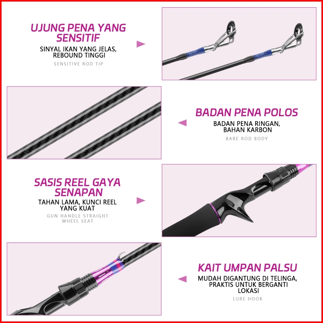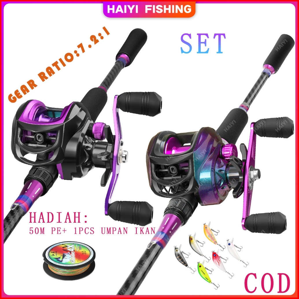 Haiyi Fishing Joran Pancing Set Pancingan Baru Warna Ungu - Rasio Kecepatan 7.21 1 Set Pancing Reel Baitcasting Jarak Ja