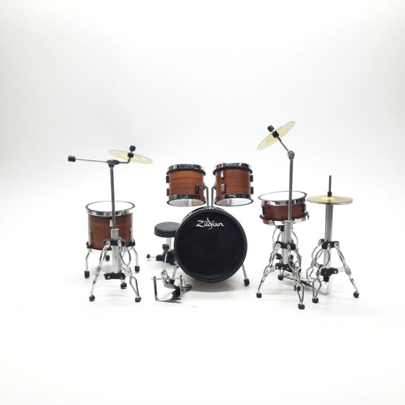 miniatur drum set BROWN skala 1 : 12 hiasan rak dinding pajangan dekorasi rumah