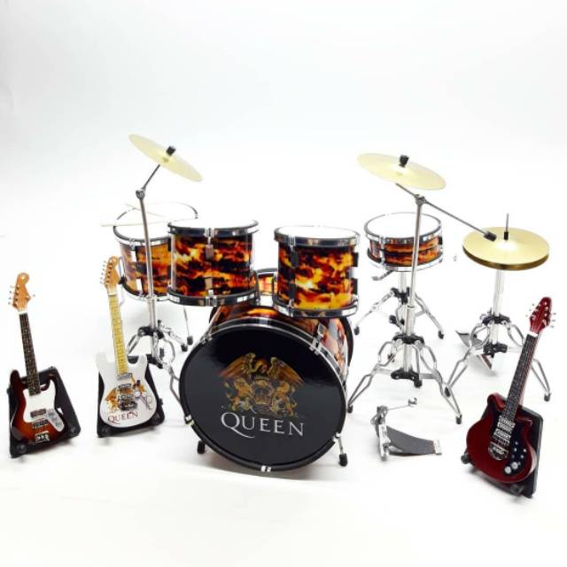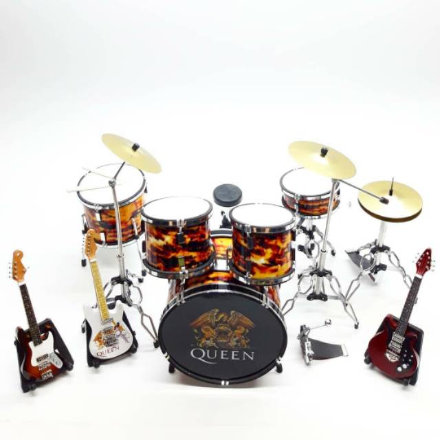miniatur alat musik drum set queen plus gitar mini 10 cm