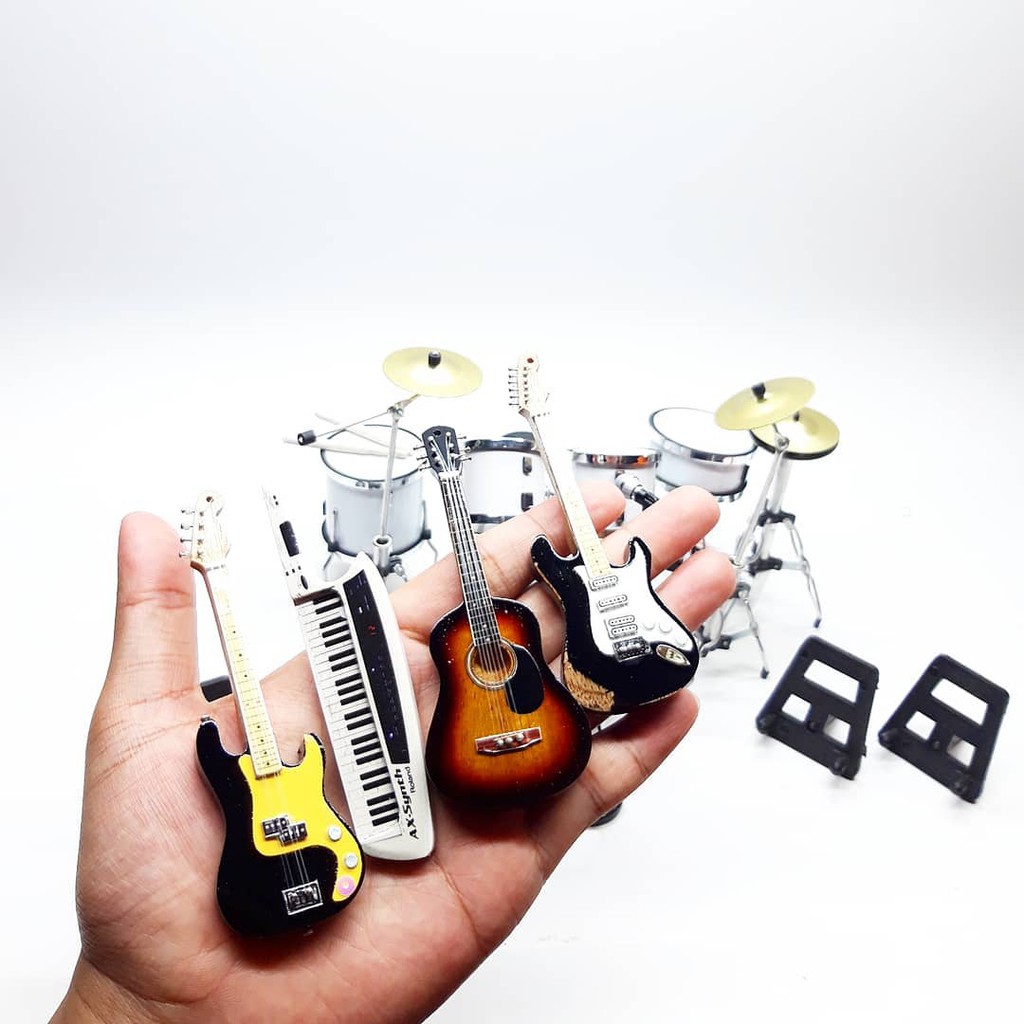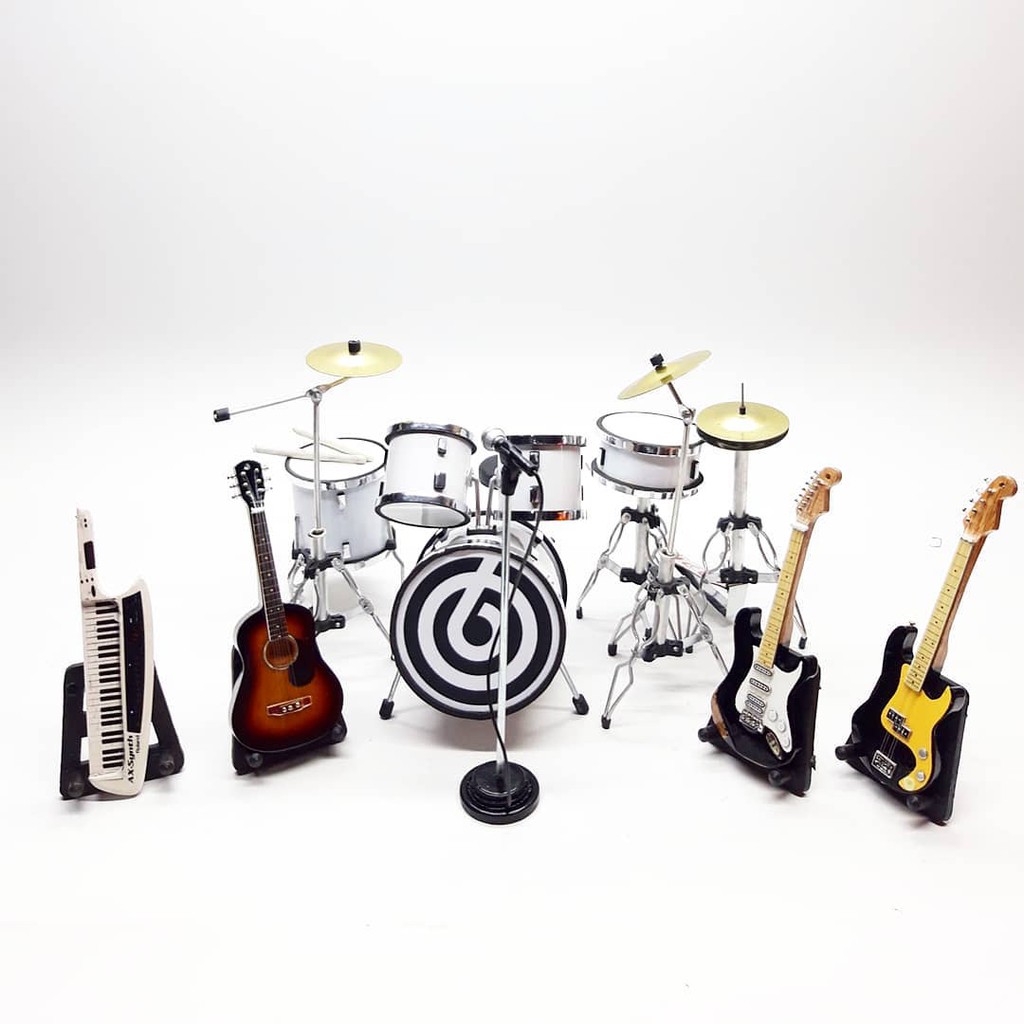 Miniatur Drum Day6 White Dan Gitar Exclusive Skala 1/12 Plus Mic