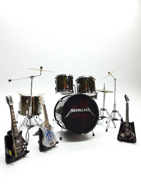 Miniatur Drum dan Gitar Metallica Black Photography Property merchandise aksesoris