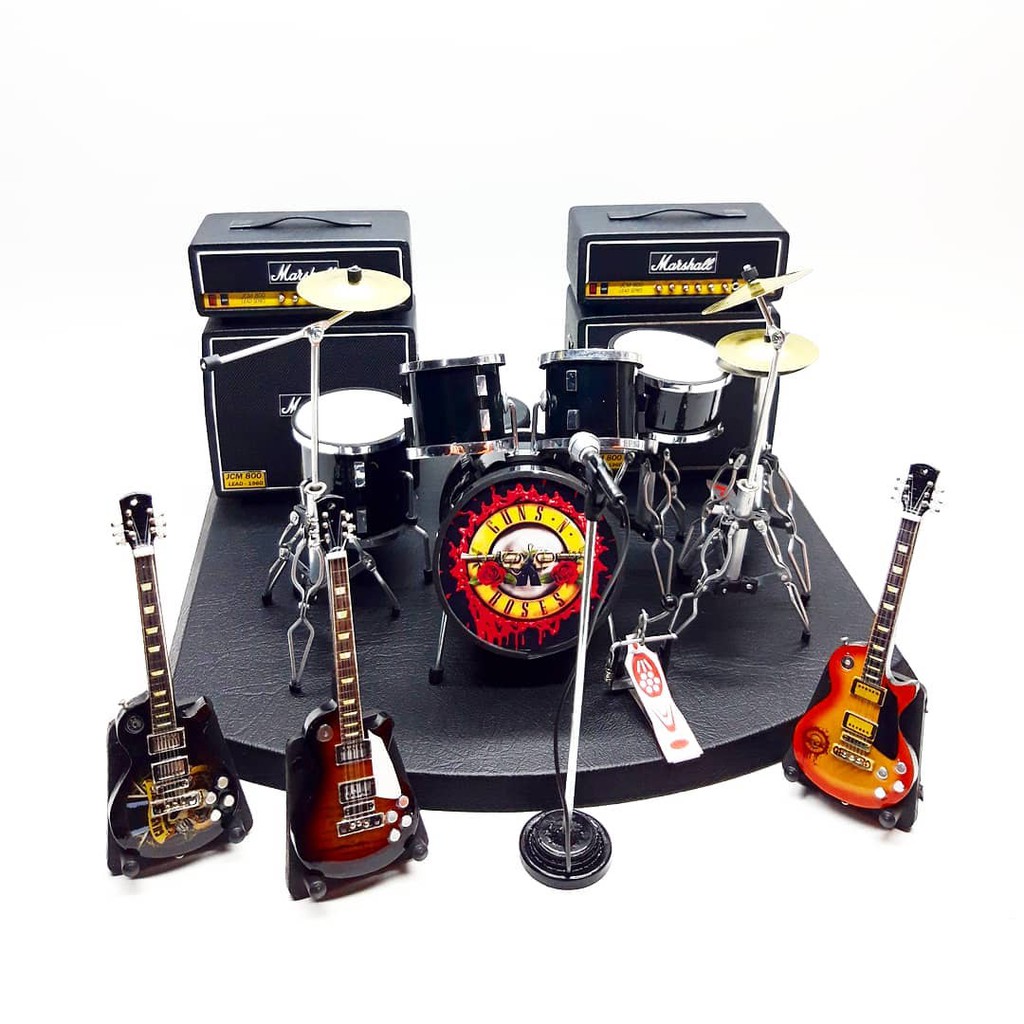 Miniatur Gitar Slash dan Drum Guns N Roses Skala 1/12 Set Konser Plus Stage Mic dan Panggung