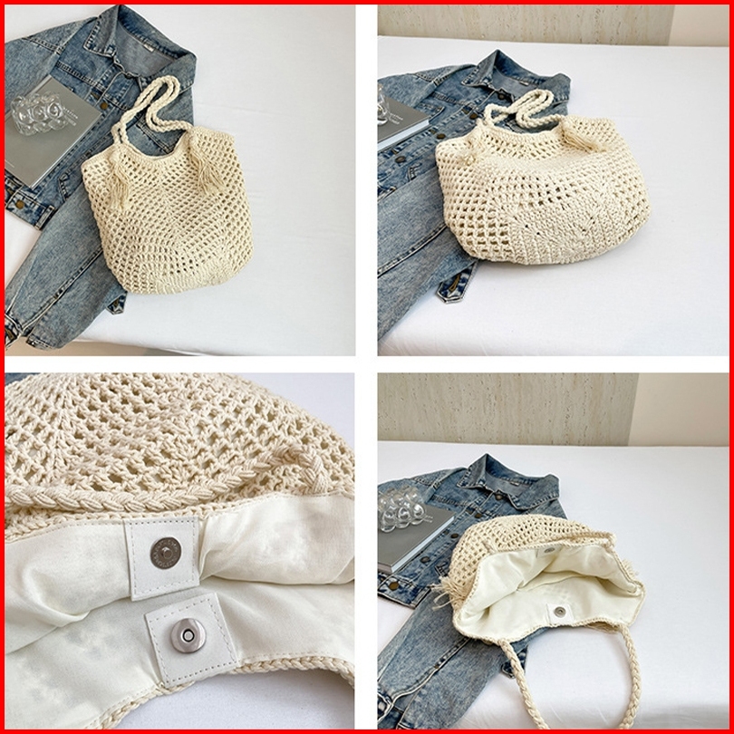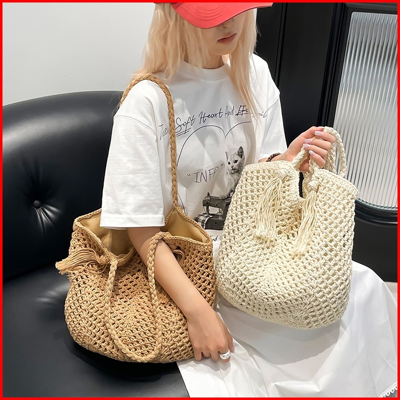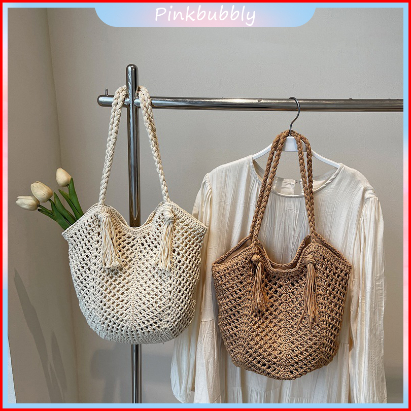 Pinkbubbly.tas Pantai Anyaman Berongga Korea Tas Liburan Tas Pantai Tas Wanita Modis Tas Tangan Tas Bahu