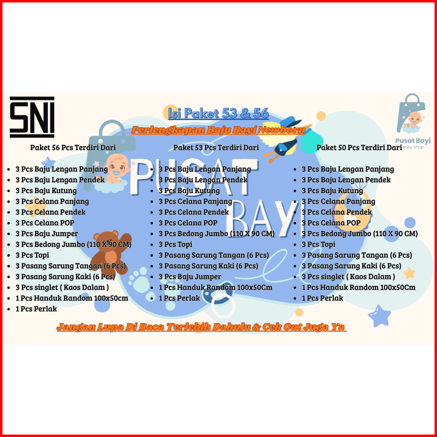56 Pcs Paket Lahiran Lengkap Baju Bayi Baru Lahir Newborn Sni Cocok Untuk Kado