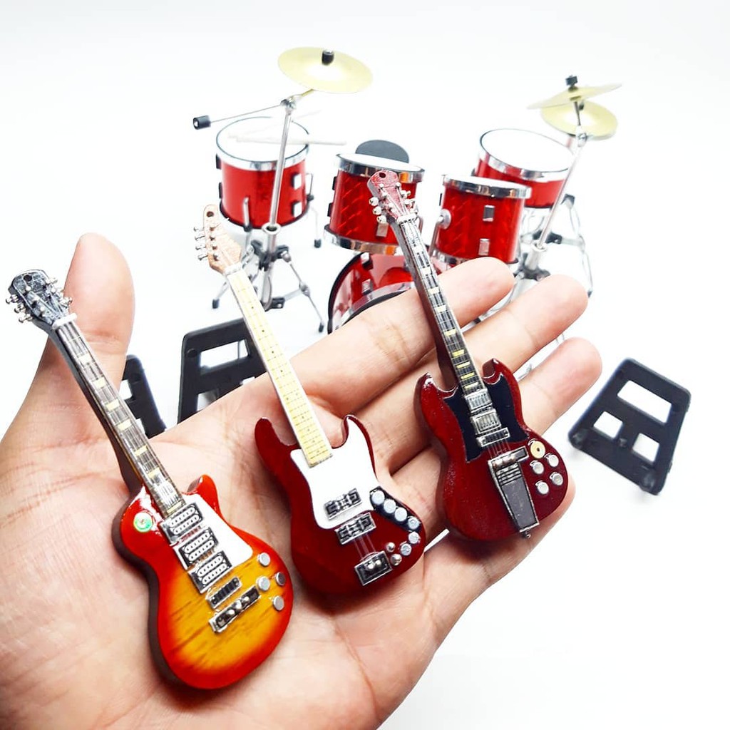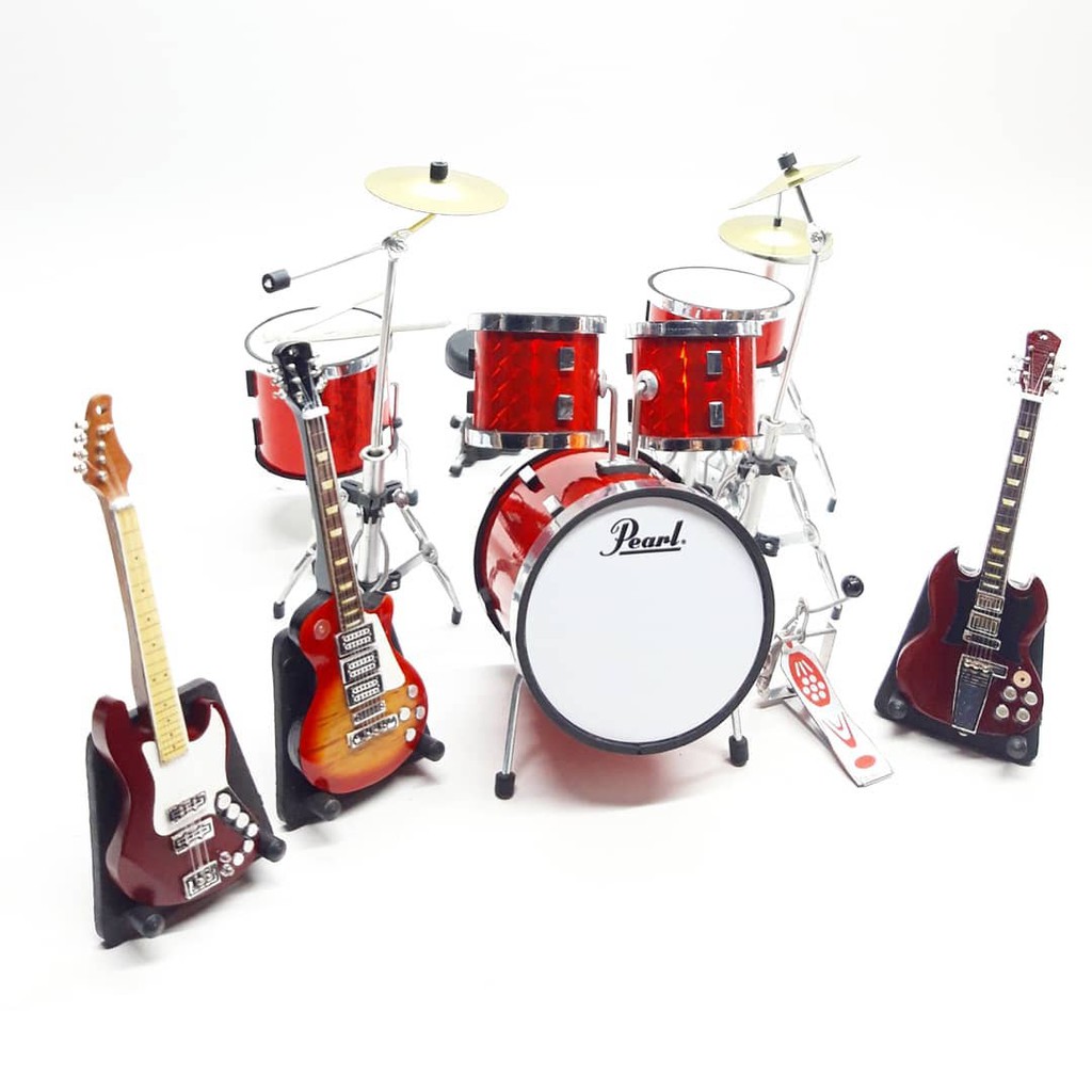 Miniatur Drum Pearl Merah Dan Gitar Exclusive Skala 1/12