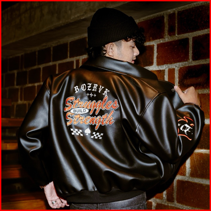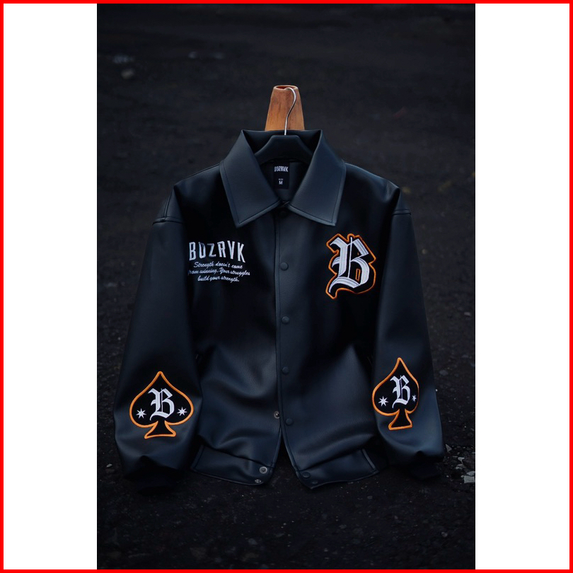 Bozrvk Jaket Varsity Hitam Leather Full Bordir