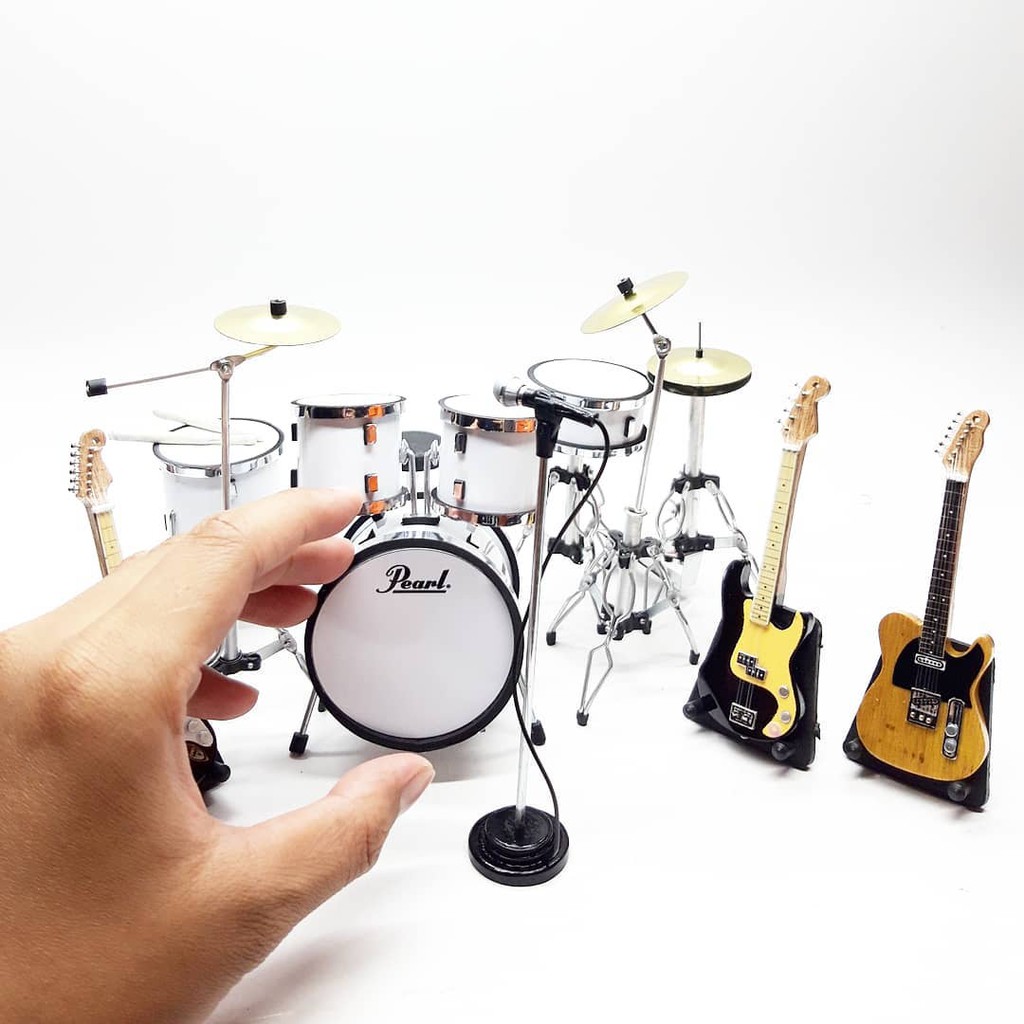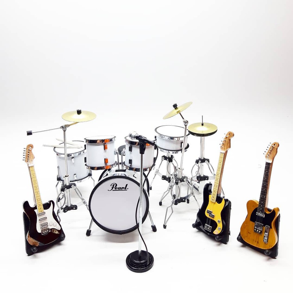 Miniatur Drum Pearl White Dan Gitar Exclusive Plus Mic 1/12 Photography Property merchandise aksesoris