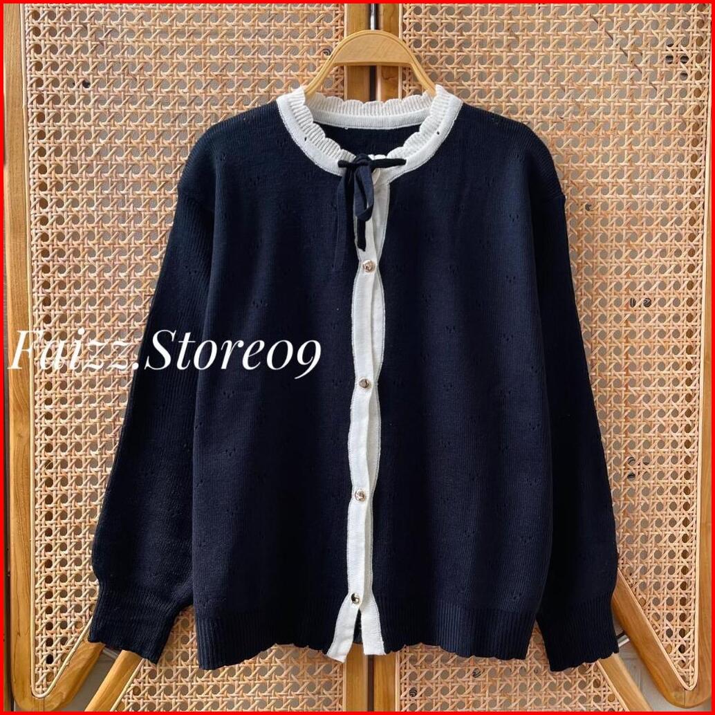 Rakiva Cardigan Rajut Kancing Wanita Motif Tali Pita Lengan Panjang Kekinian Korean Style Premium