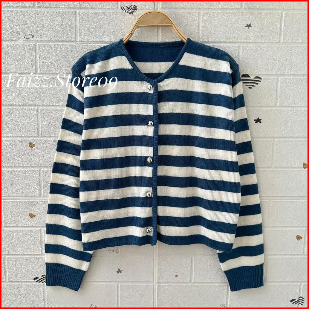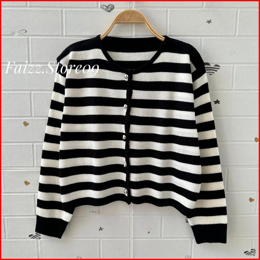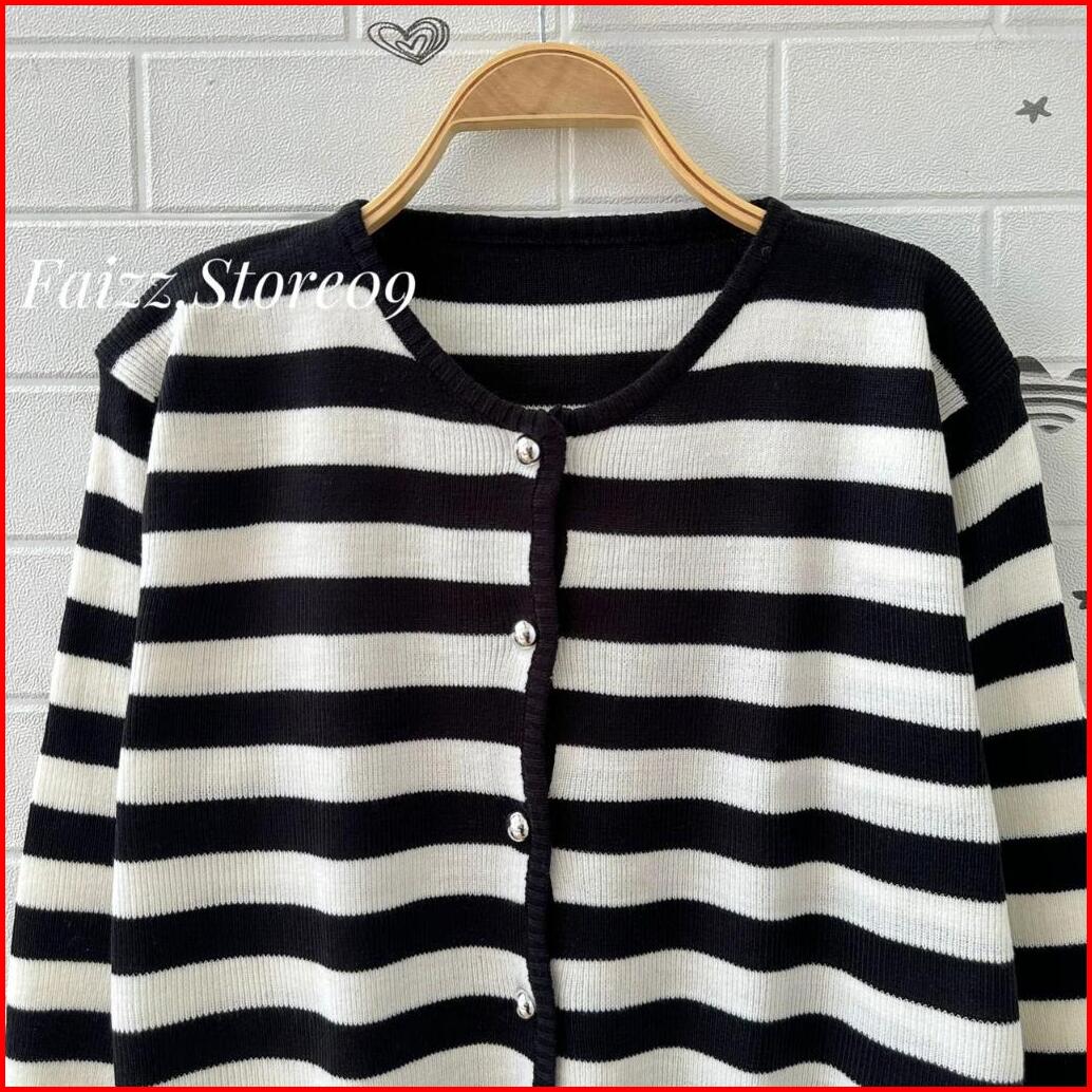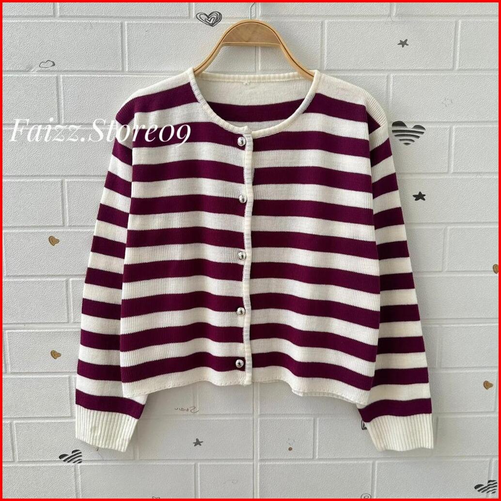Sitala Cardigan Rajut Crop Stripe Atasan Wanita Lengan Panjang Korea Kekinian