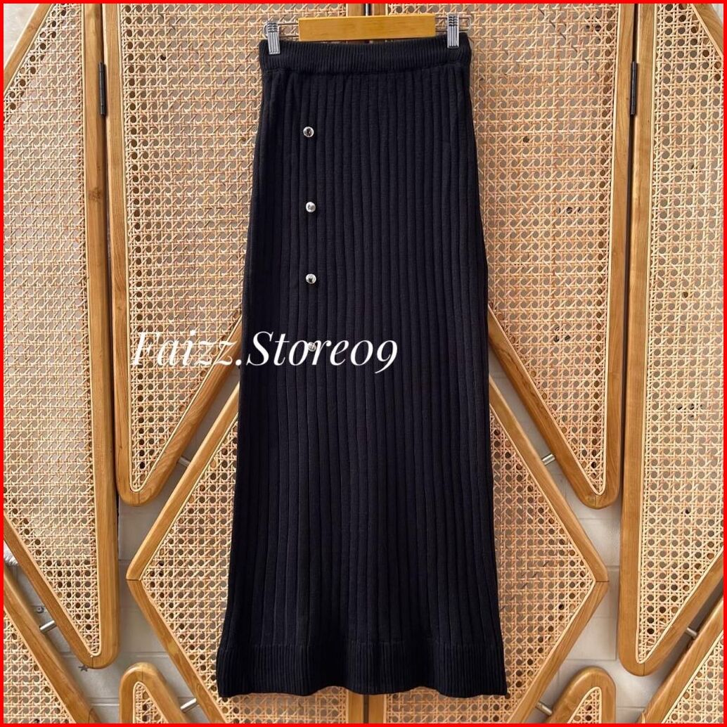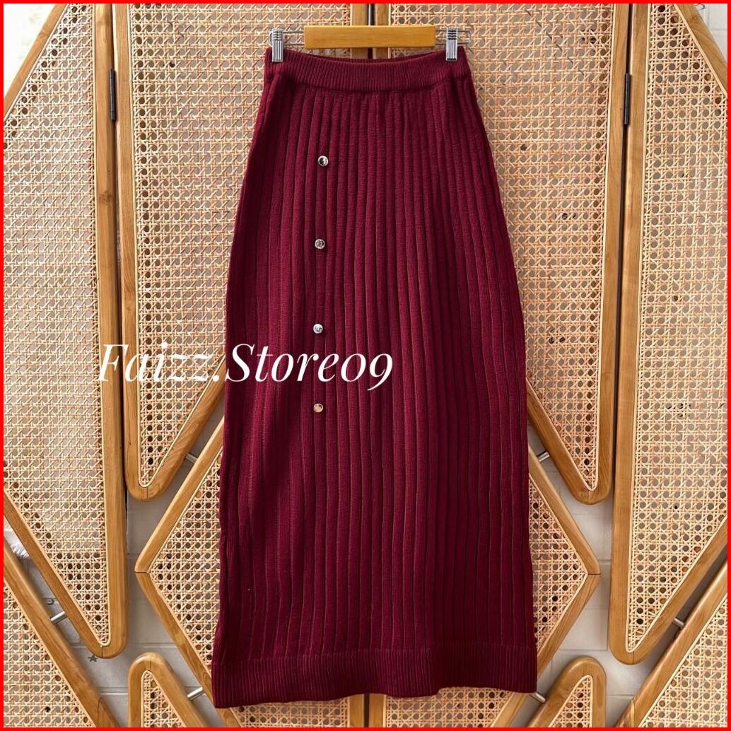 Alexa Rok Span Knit Rajut Panjang Premium Wanita Motif Kancing Jalur Kekinian