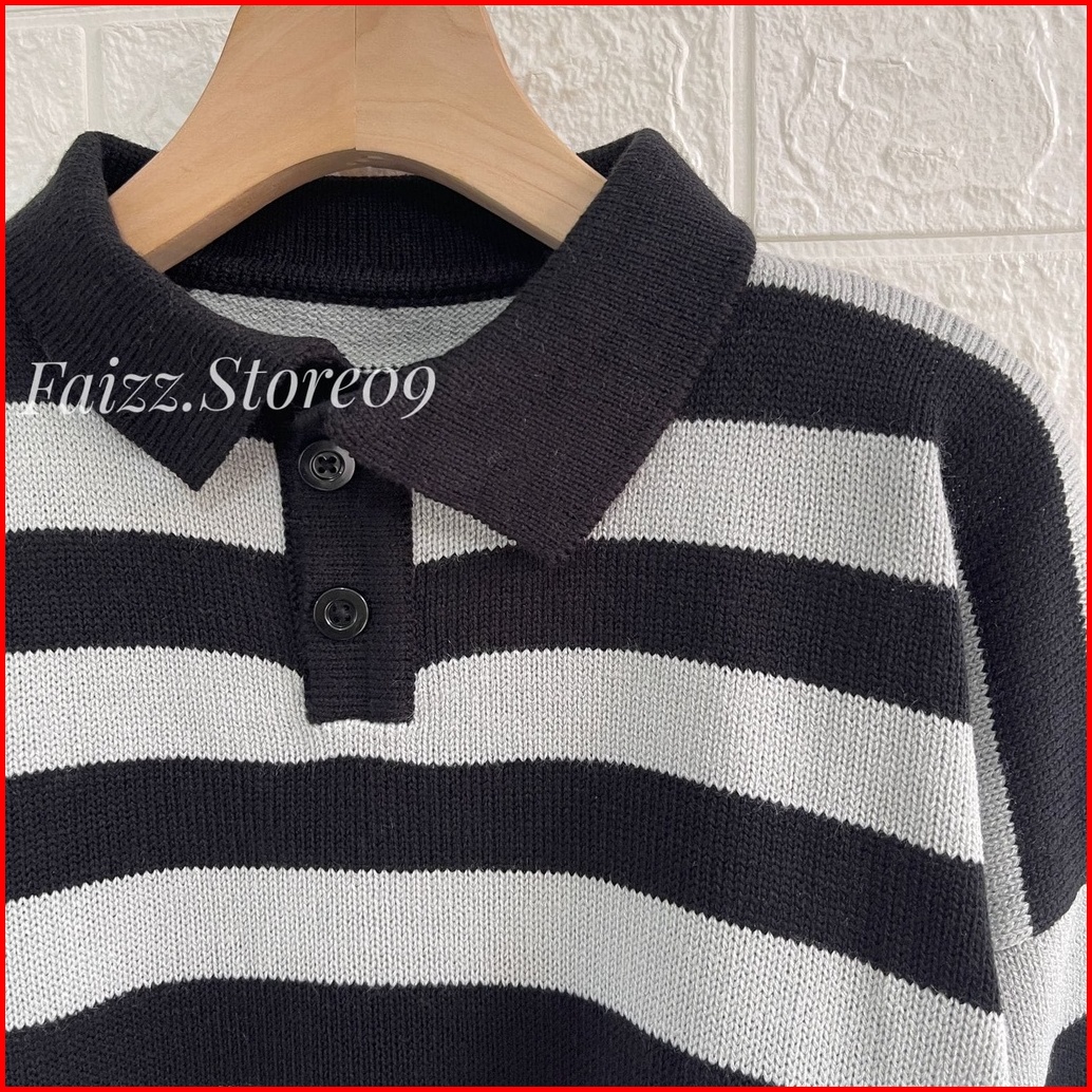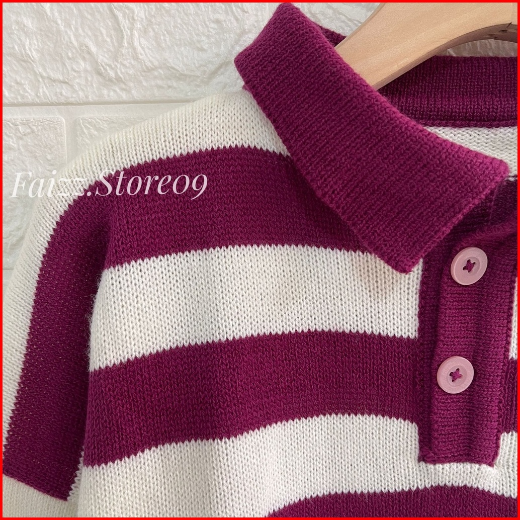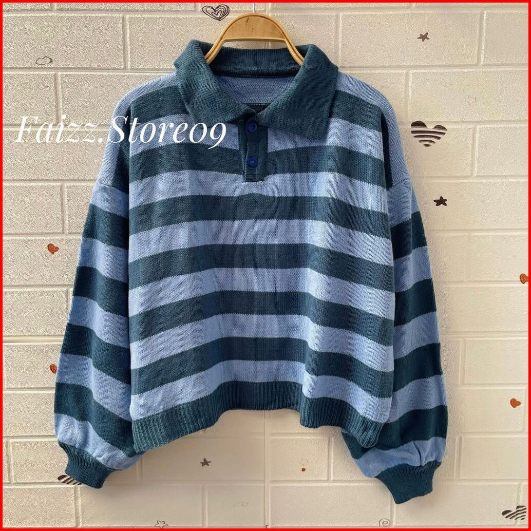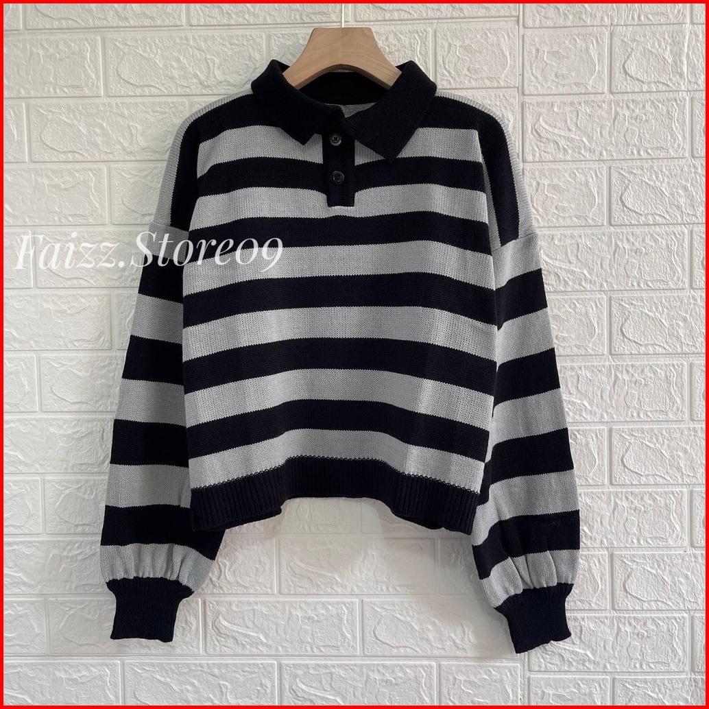 Polo Sweater Rika Blaster Blouse Strippe Lengan Panjang