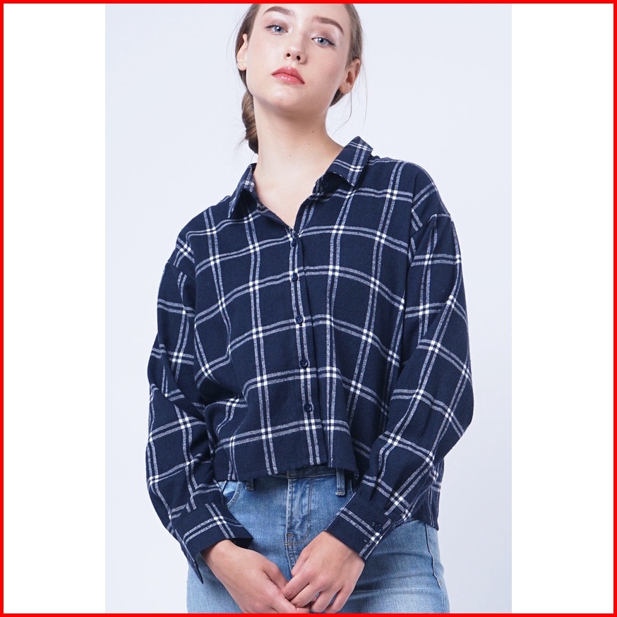 Logo Jeans Kemeja Wanita Flanel Lilia Navy White 24859l5nw