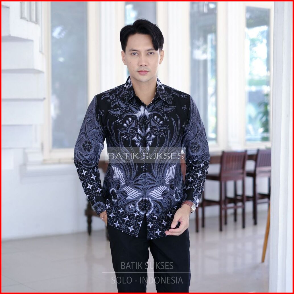Ajisaka Abu Hem Atasan Kemeja Baju Batik Pria Cowok Laki Laki Lengan Panjang Slimfit Full Lapis Furing