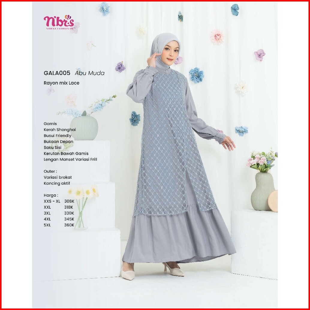 Gamis Nibras Terbaru Gala 005 Gamis Bahan Premium 2in1 Gamis Iner Outer Gamis Cantik Elegan