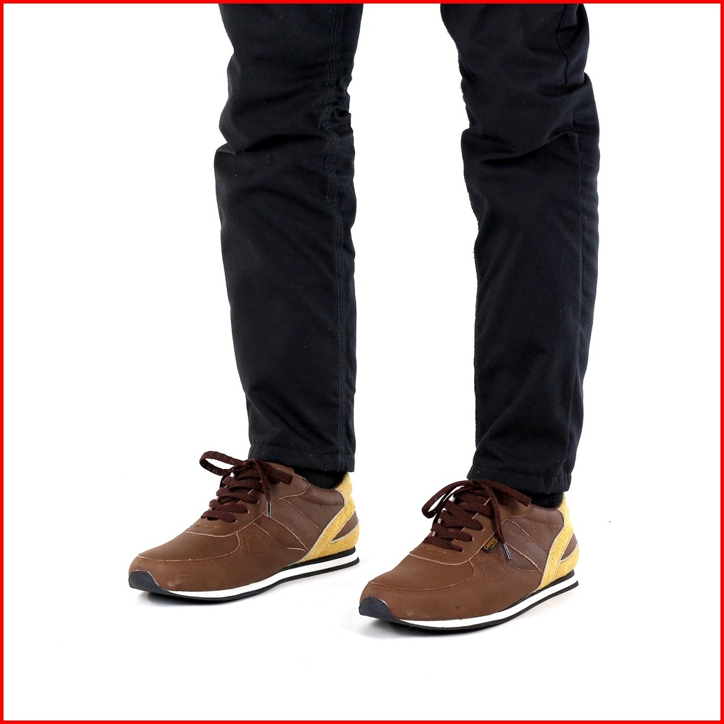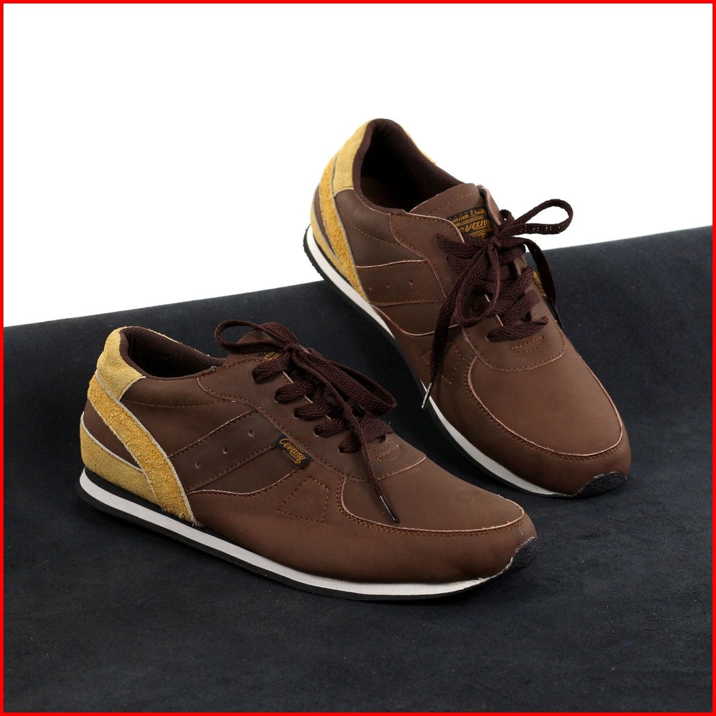 Cevany Sepatu Sneakers Pria Kulit Asli Valiente - C044 Coklat