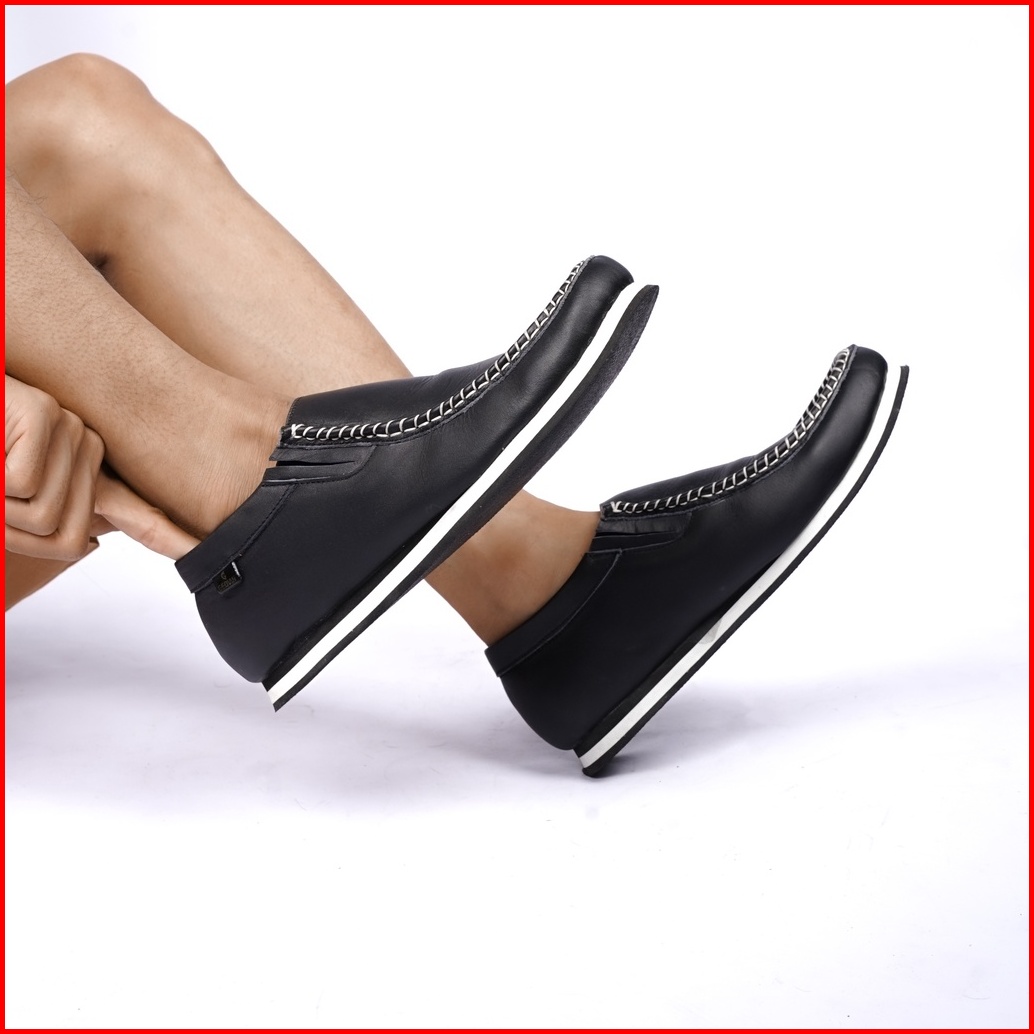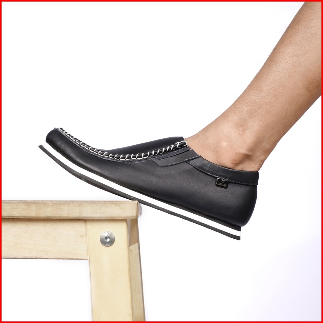Cevany Sepatu Pria Kasual Slip On Kulit Asli Geovani S - G09 Hitam