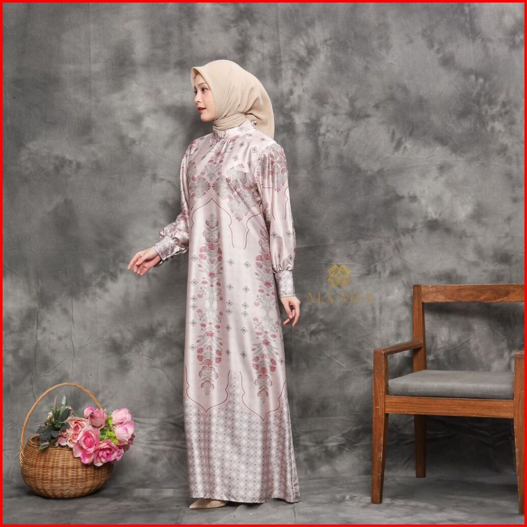 Alvara Gamis Lebaran 2026 Model Terbaru Dress Wanita Nadira Silk Motif Mewah Elegan Big Size Jumbo