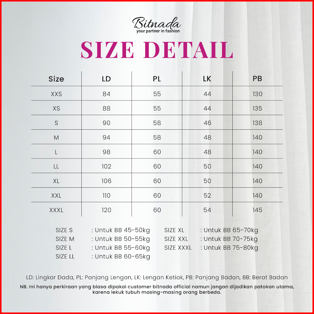 XXS, XS, S, M, LL, L, XL, XXL, XXXL, Request Ukuran