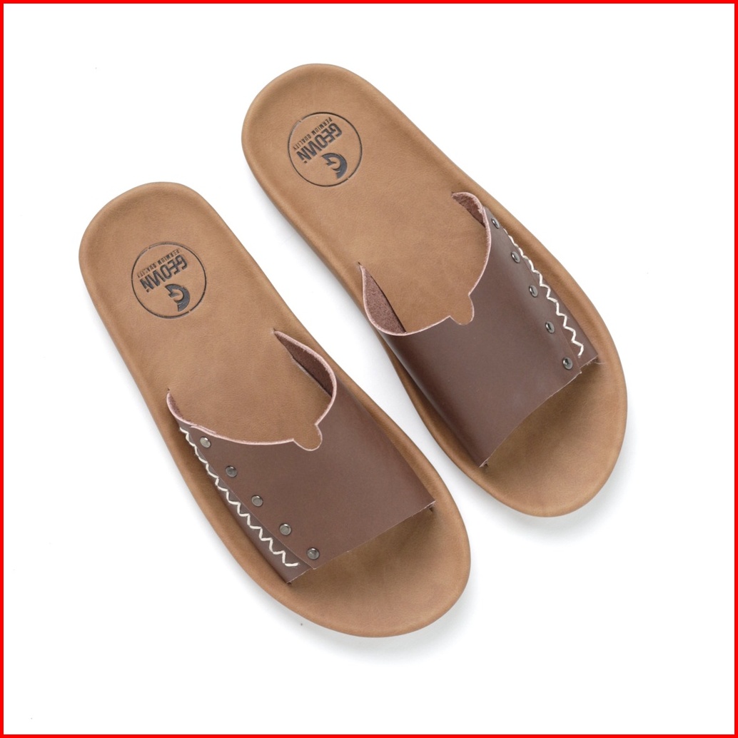 Cevany Sandal Slide Slop Slippers Pria Kulit Pria Coklat - Sc18