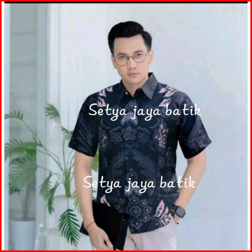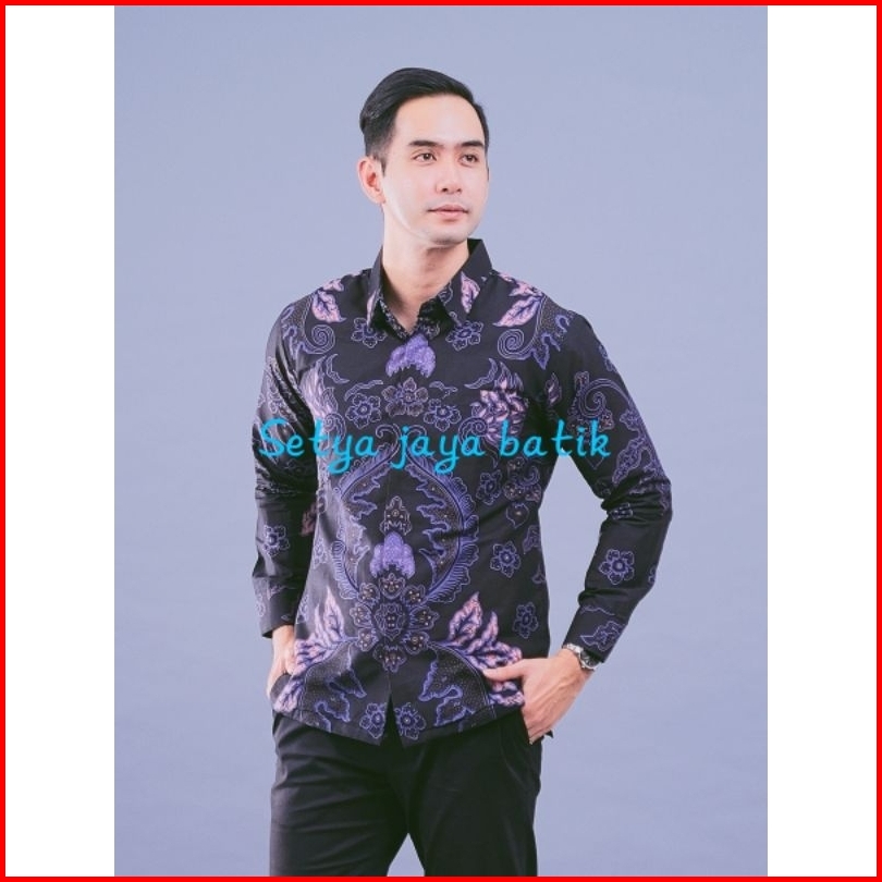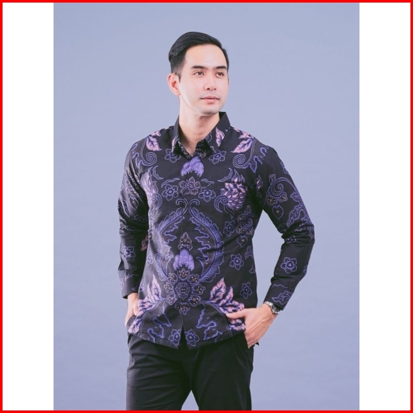 Kemeja Batik Pria Lengan Panjang Modern Terbaru Slimfit Ajisaka Mahkota Hitam Pink Lapis Furing