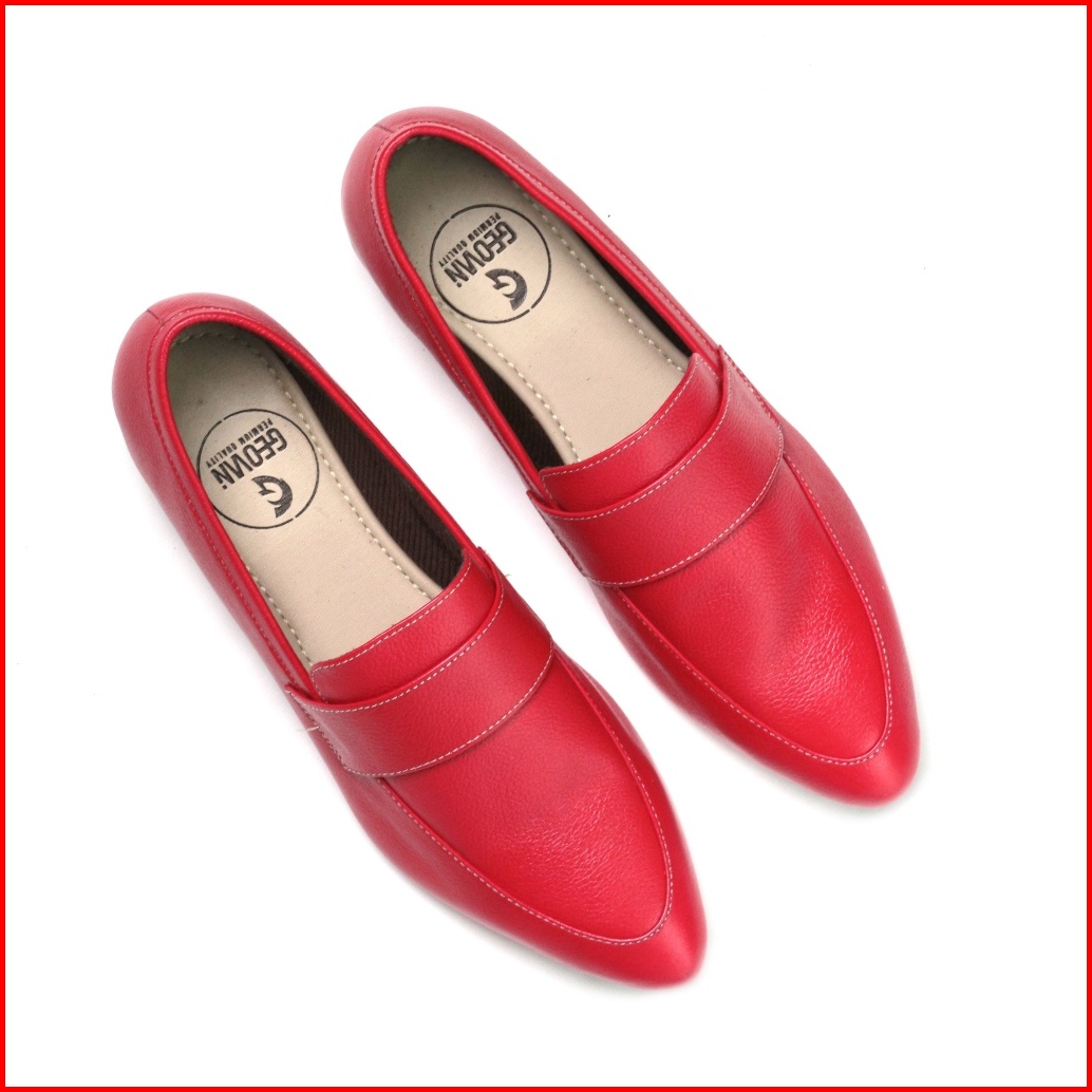 Cevany X Geovani Sepatu Flat Shoes Wanita Kulit - Merah Caroline