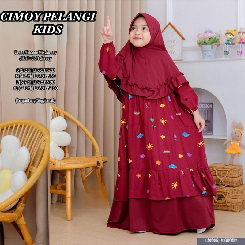 BISA READY LANGSUNG KIRIM Gamis Anak perempua 2 - 10 tahun gratis hijab / cimoy pelangi/milea kids set