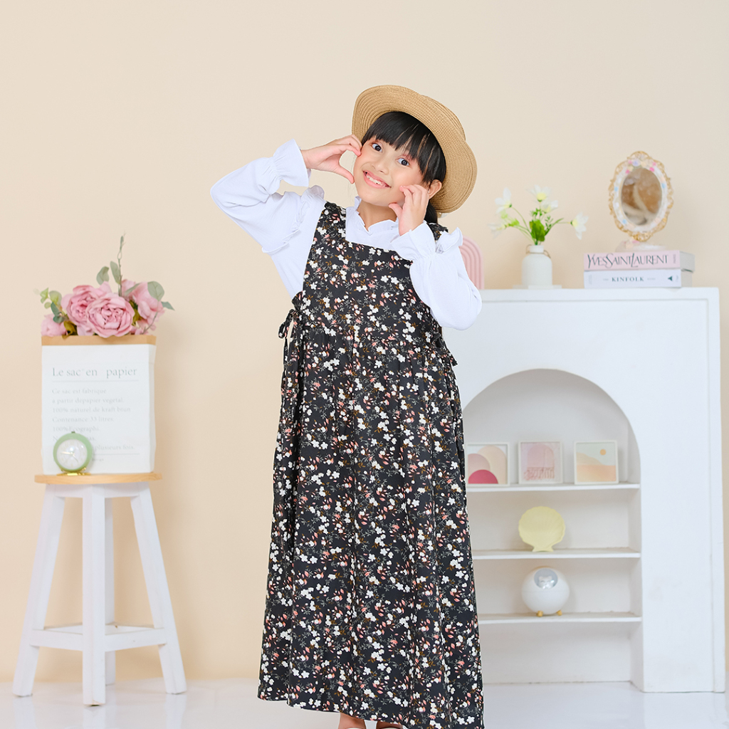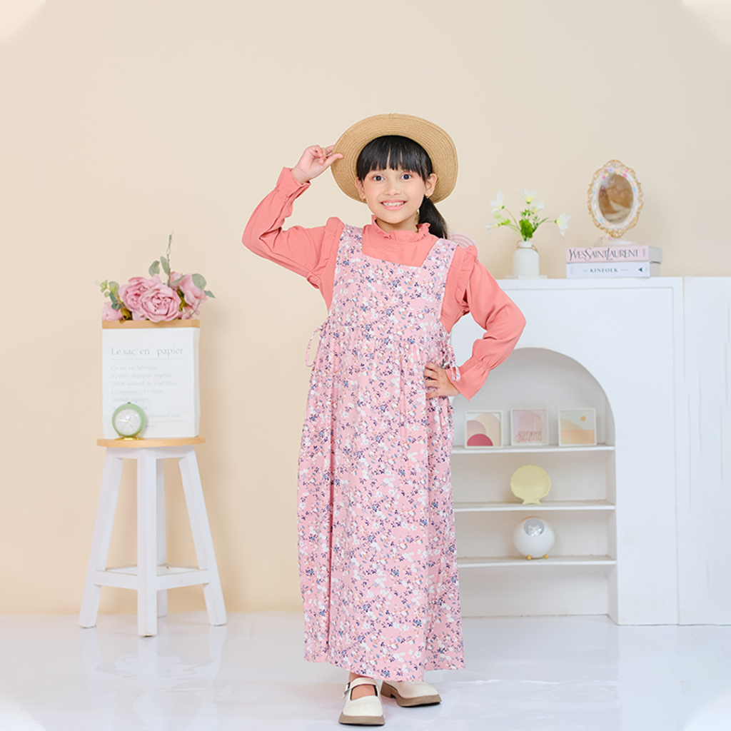 Baju Muslim Anak Perempuan 4-12 Tahun Overall Korean Style Set Blouse Iner Gamis Dress