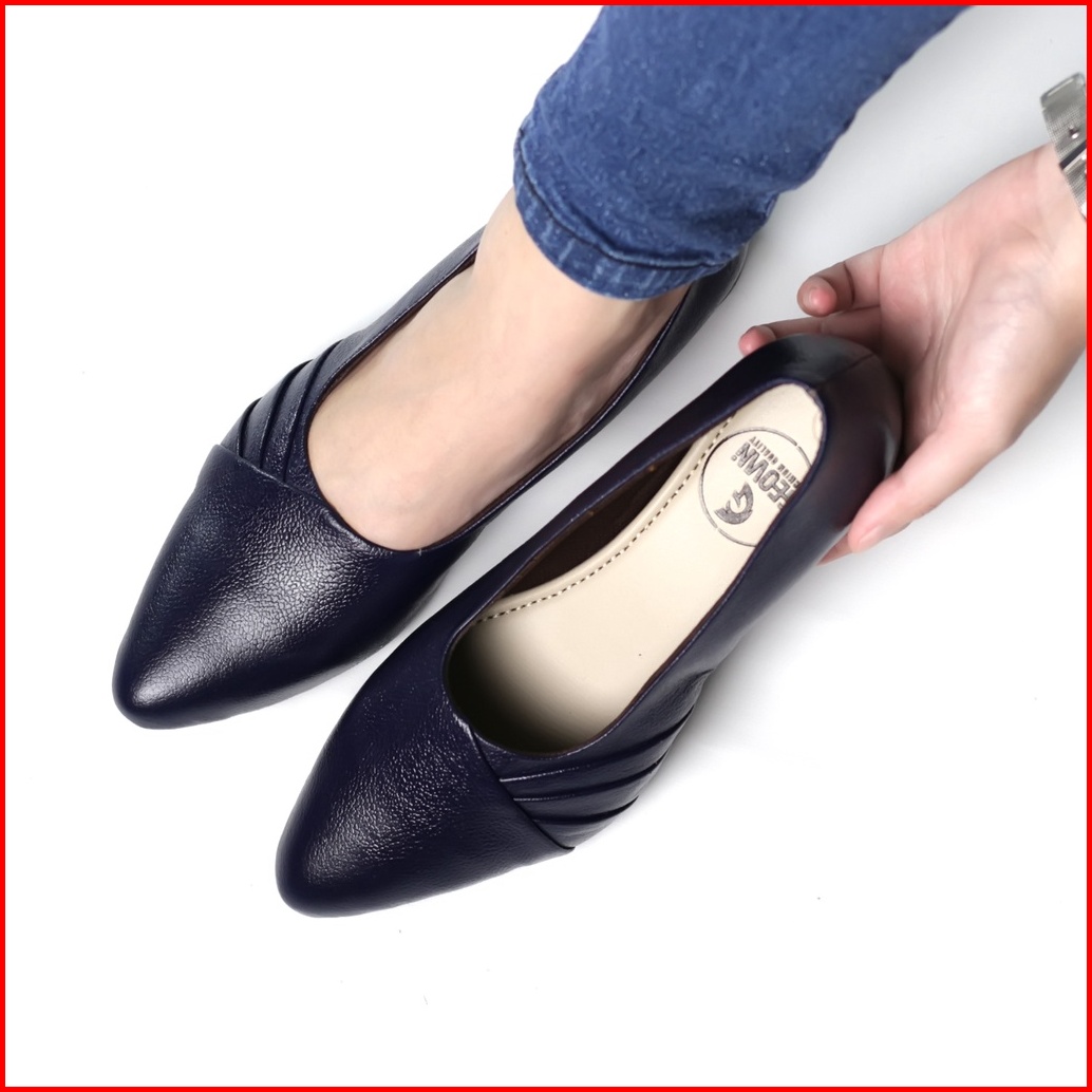 Cevany Sepatu Flat Shoes Wanita Kulit Navy Chiara