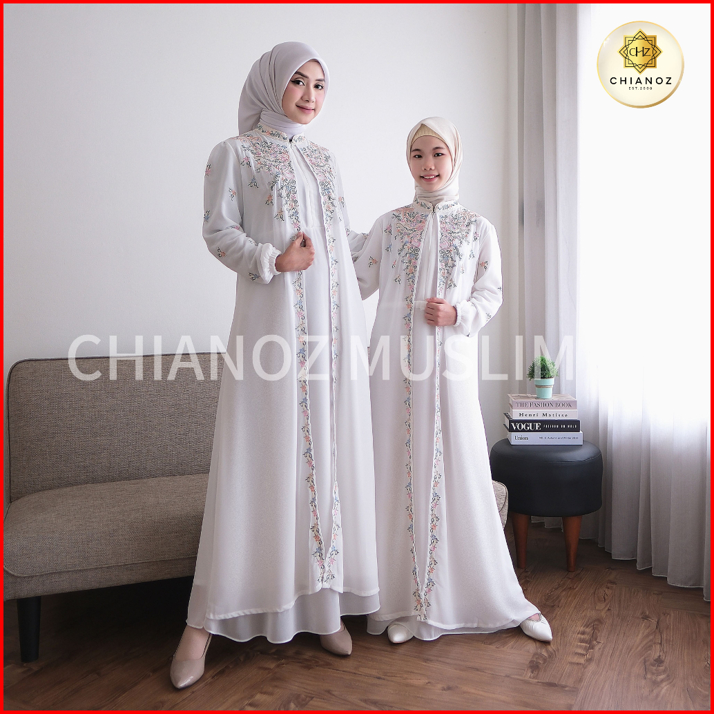 Chianoz Gamis Putih Mewah Rossa Dress Renda Bunga Baju Lebaran Umroh Haji Manasik Pesta Akad 938 945