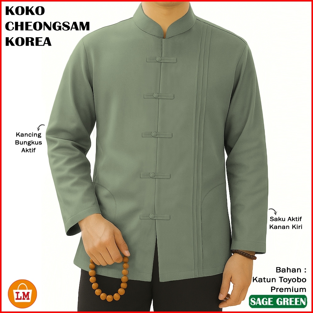 Ma Koko Cheongsam Korea - Baju Koko Pria Muslim Lengan Panjang Bahan Kain Katun Toyobo Premium 38469 Bahan Lembut Adem K