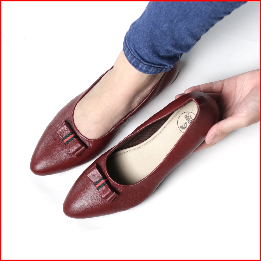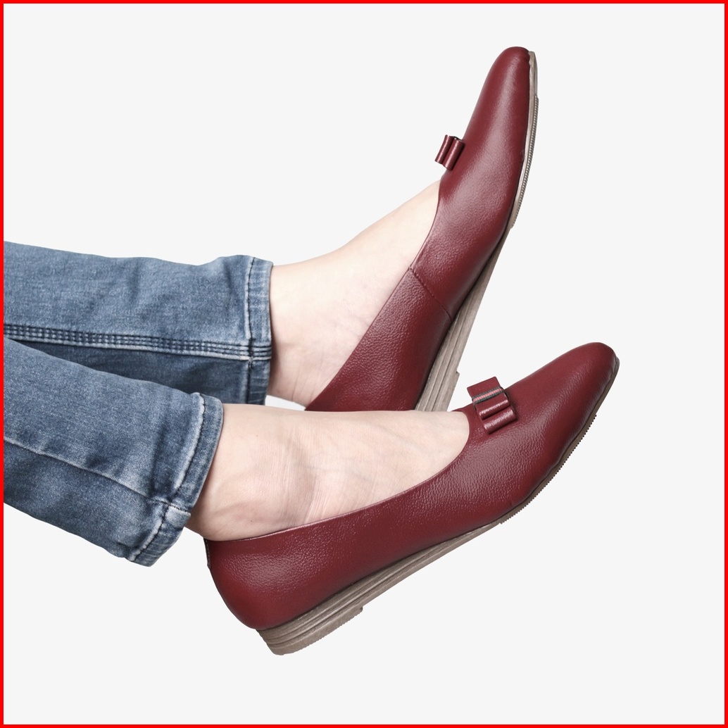 Cevany Sepatu Kerja Wanita Flats Shoes Formal Kulit Asli Geovani S - Pp01 Maroon