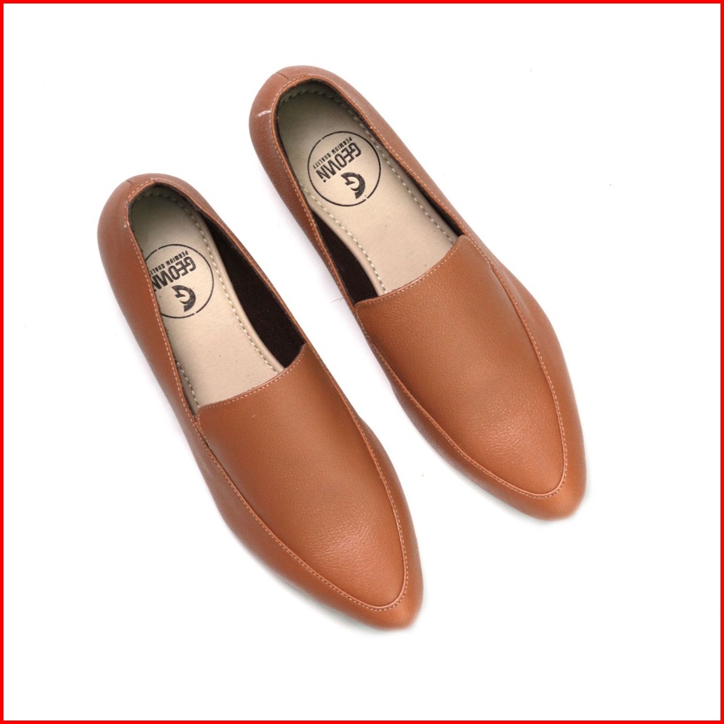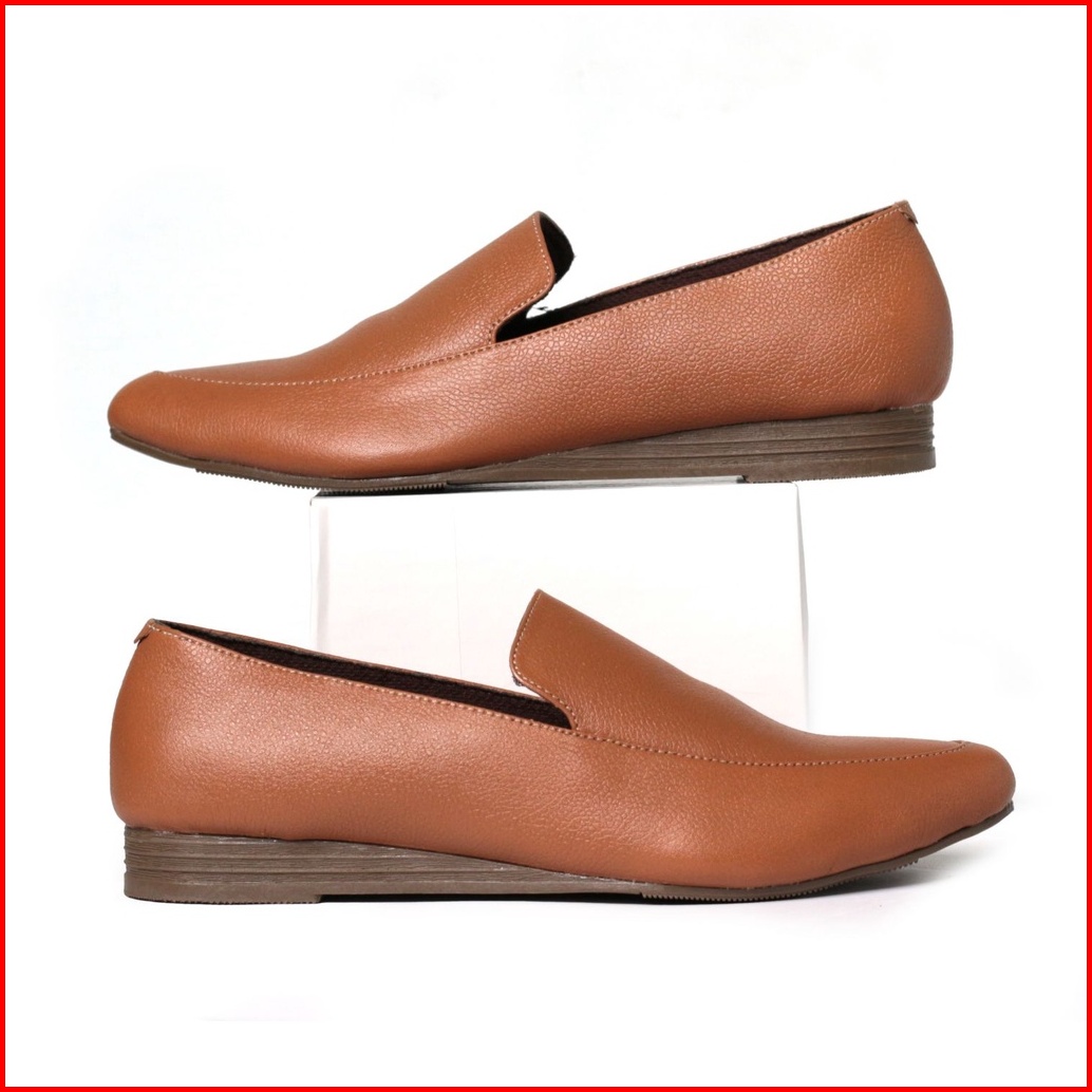 Cevany Sepatu Flat Shoes Wanita Kulit Karamel Charlotte