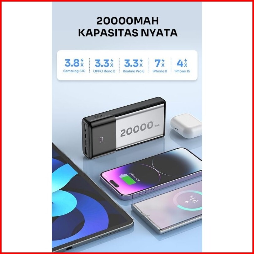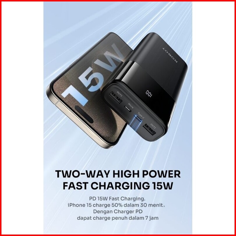 Robot Rt22s Powerbank 20.000mah Fast Pd15w Triple Output Dual Usb-a Type-c Led Indikator - Rt190s