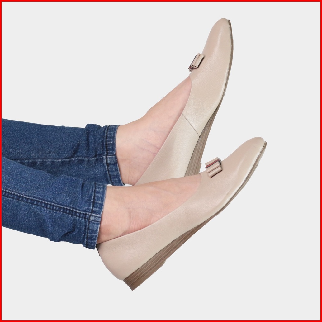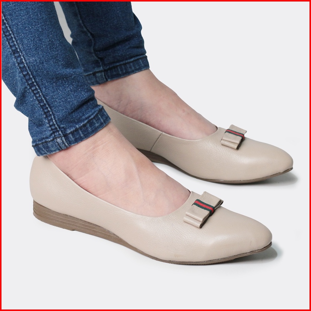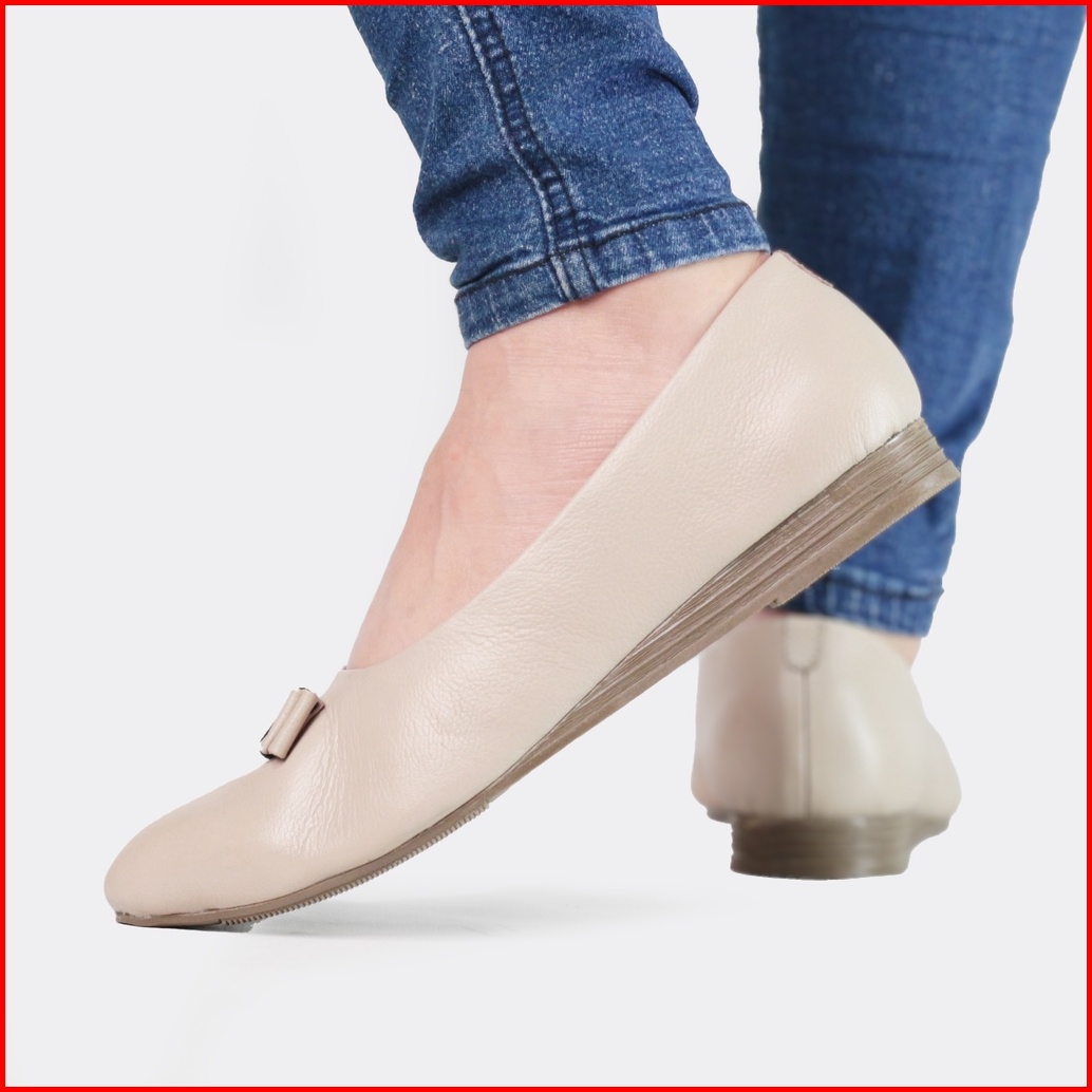 Sepatu Wanita Flatshoes Cream Terbaru Kulit Asli Cevany X Geovani Abella
