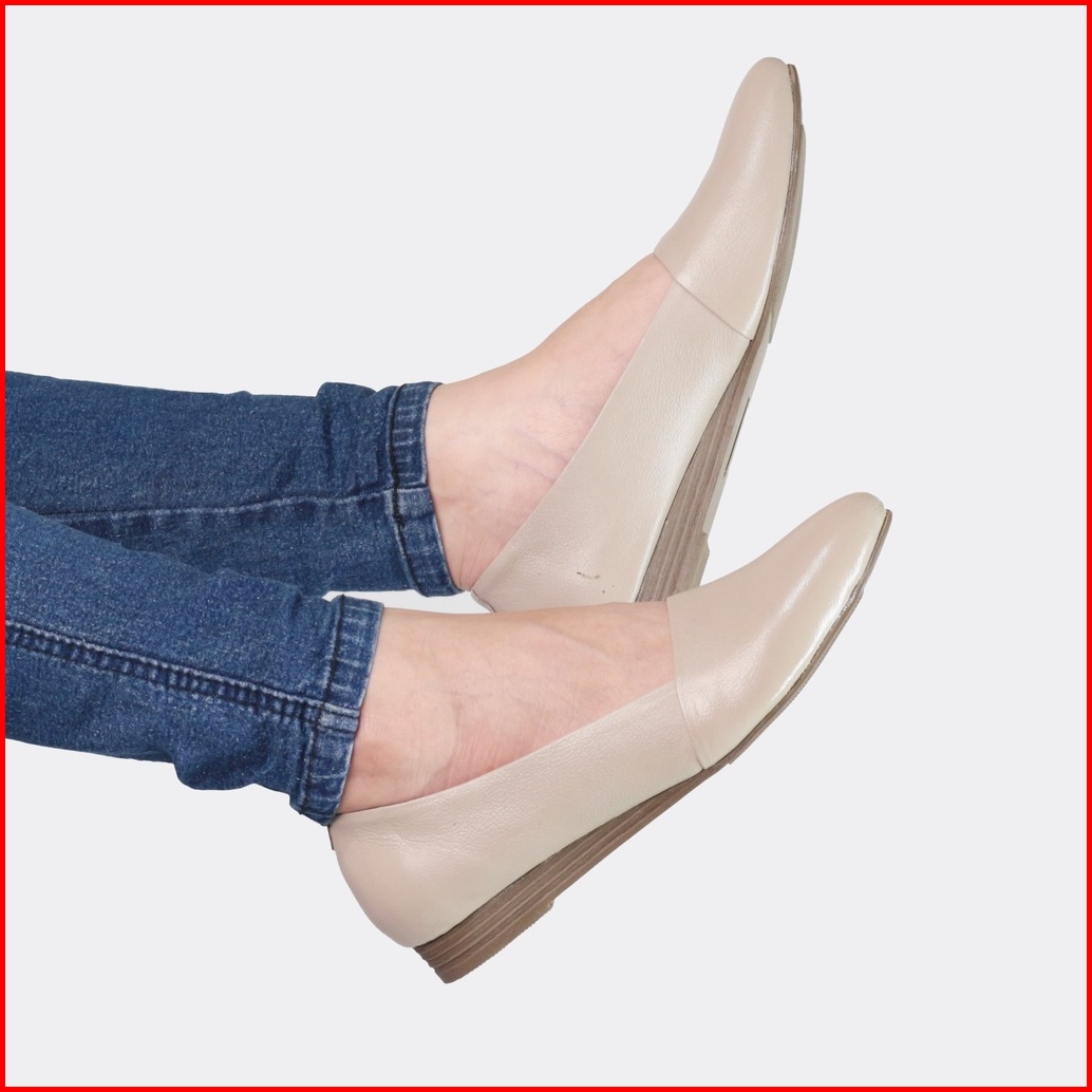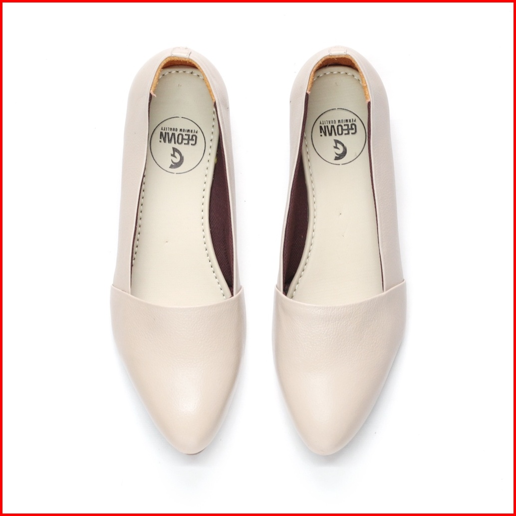 Cevany Sepatu Kerja Wanita Flat Formal Kulit Asli Geovani S - Pp03 Cream