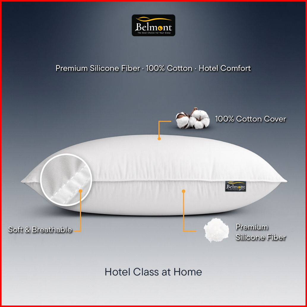 Isi 2 Pcs Bundling Bantal Belmont Empuk Hotel Quality Ukuran 40x60 Silicone Fiber Katun Lembut