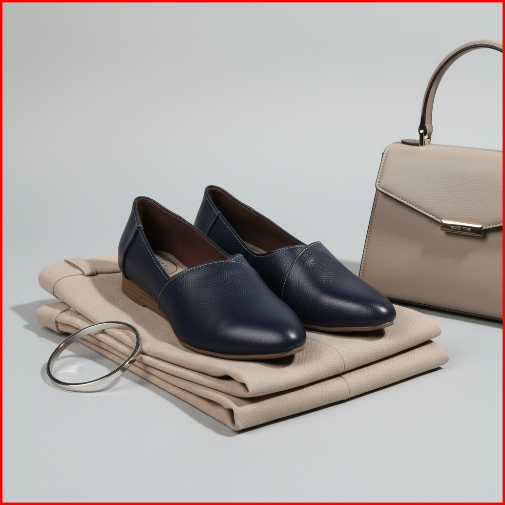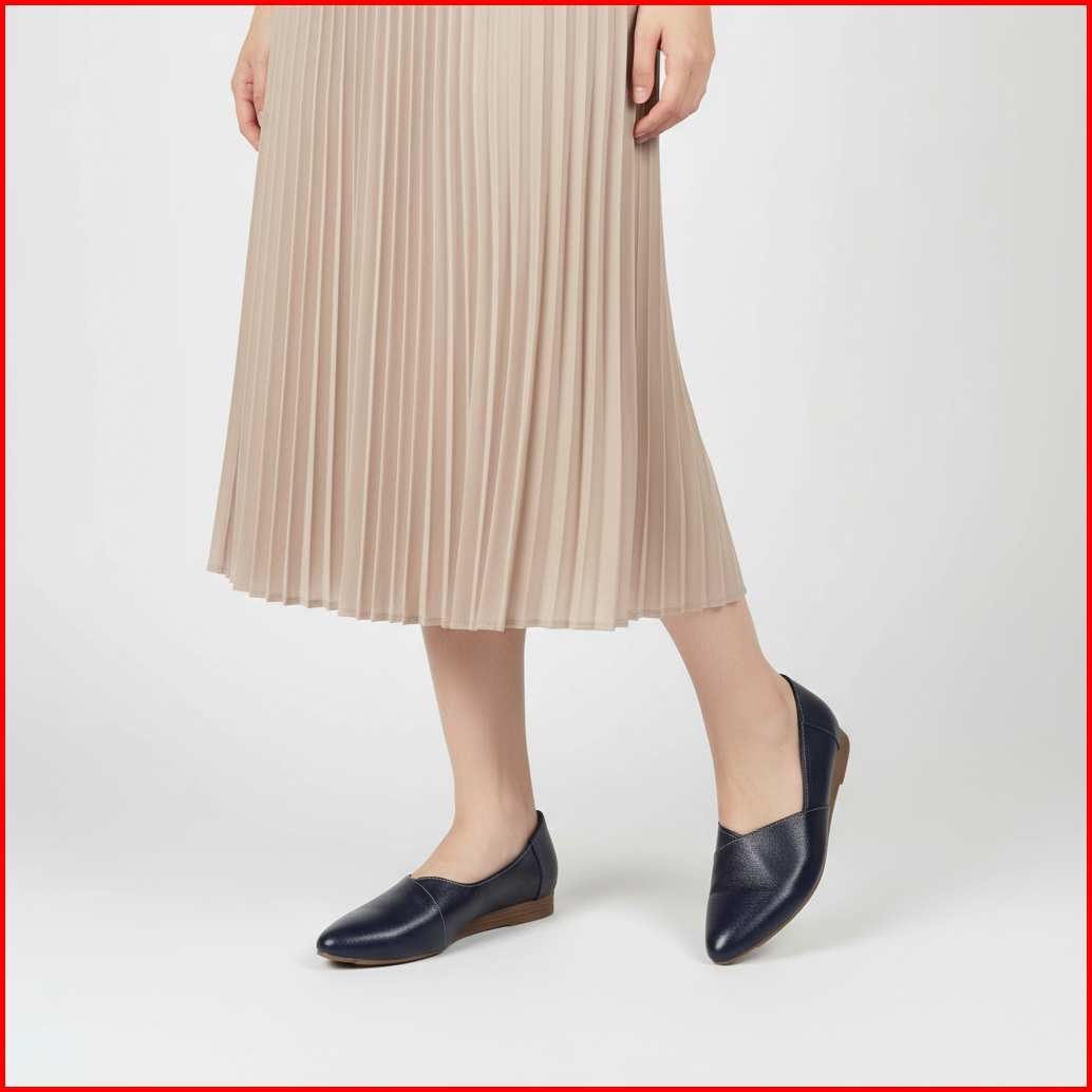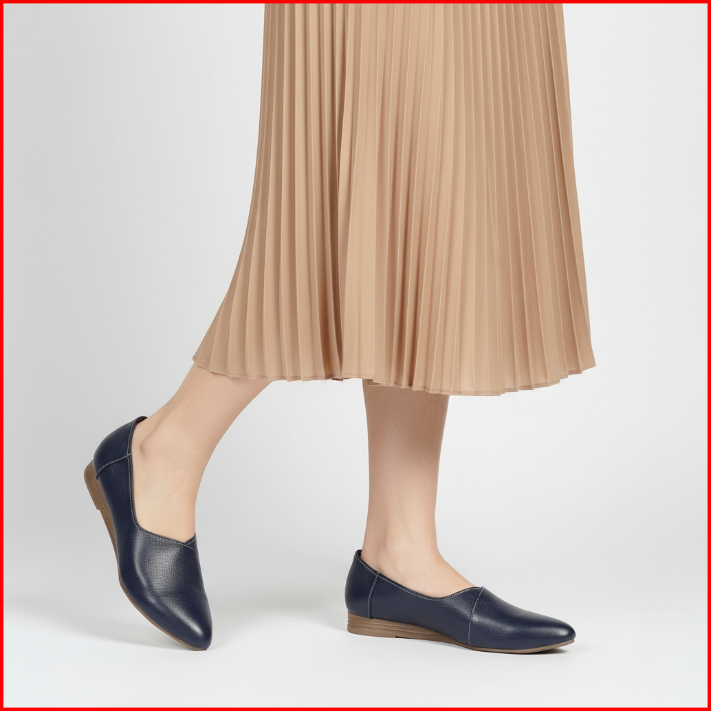 Cevany Sepatu Kerja Wanita Flat Formal Kulit Asli Geovani S - Pp02 Navy