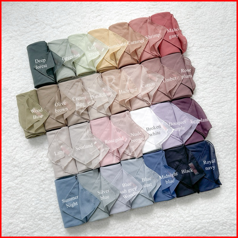 Black, Royal Navy, Broken White, Deep Forest, Rose Plum, Eggplant, Rosegold, Nude Brown, Scotland, Latte, Dandellion, Cream Sage, Olive Brown, Cotton, Umber, Caramel, Shrimp, Mahogany, Sunshine, Greentea, Lily Green, Woodbine, Sand Blue, Silver Blue, Summer Night, Midnight Blue, Blue Salt Grey, Bouquet Purple, Hazelnut