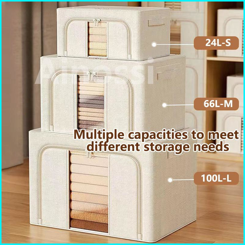 Abc Bear 66l 110l Oxford Storage Box Serbaguna Rumah Organizer Box Lipat Kotak Penyimpanan Pakaian Box Organizer Double
