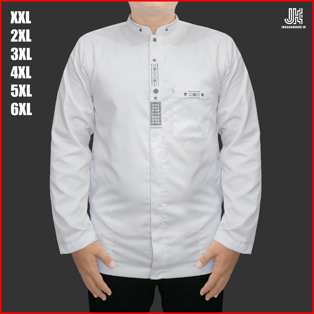 Baju Koko Jumbo Lengan Panjang Putih Xxl 3xl 4xl 5xl 6xl Dewasa Bigsize Pria Simpel Bahan Toyobo