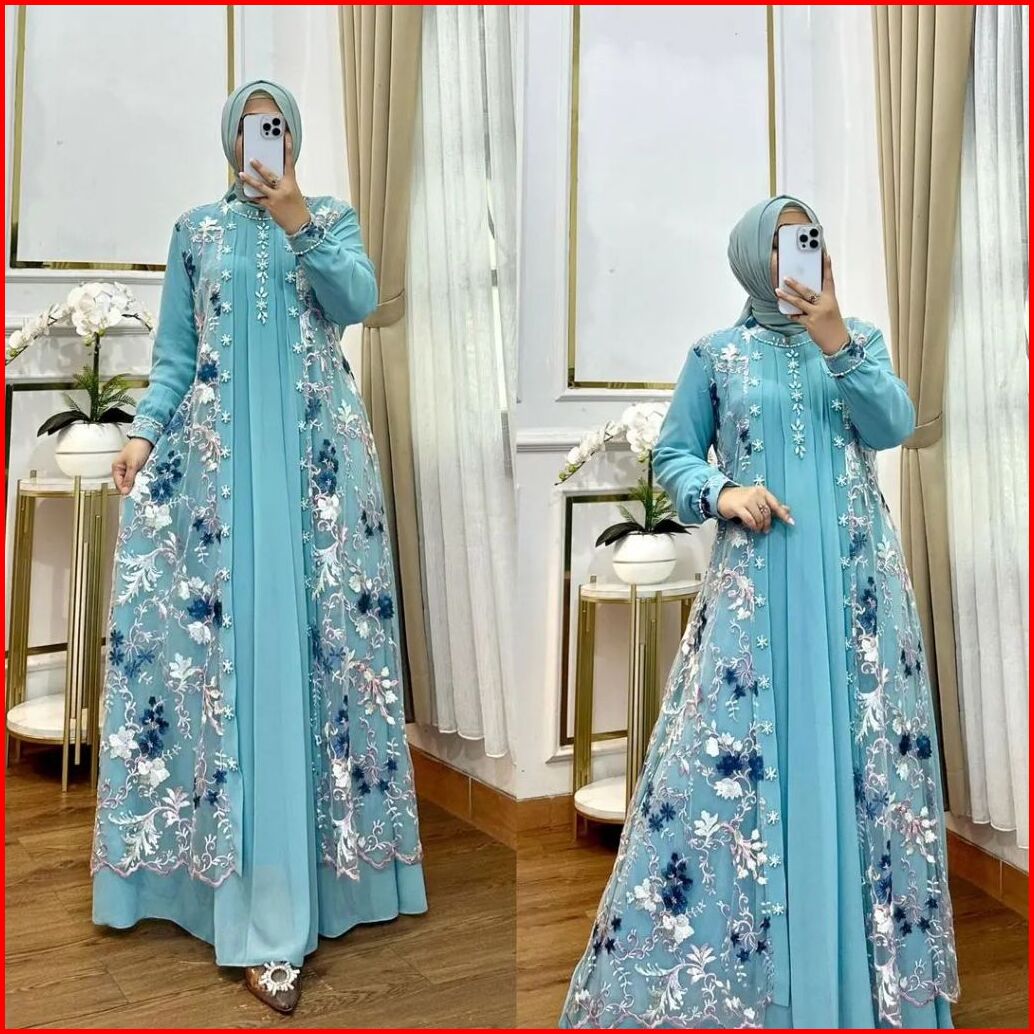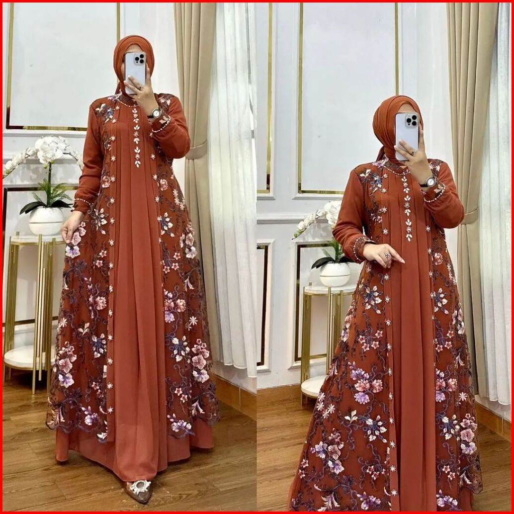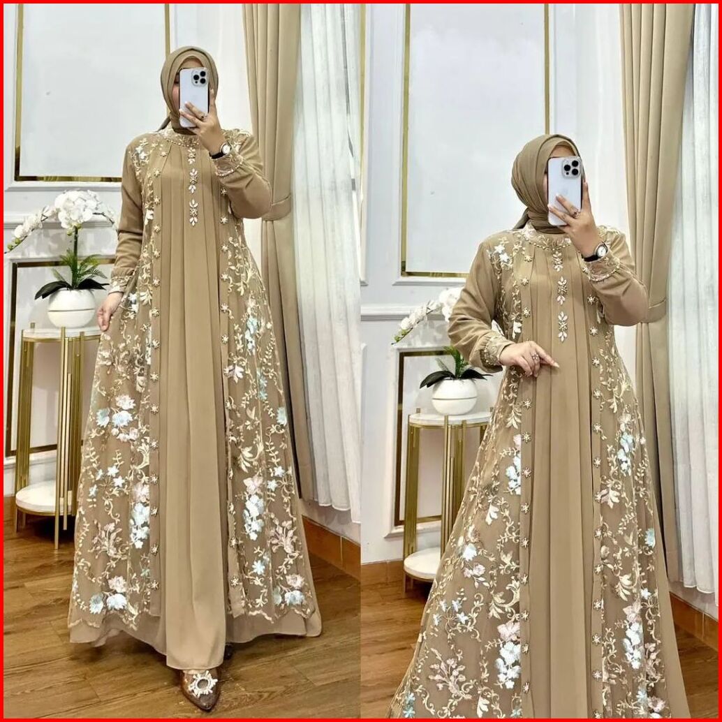 Gamis Kondangan Mewah Elegan Kanaya Dress Bp Bahan Tile Garden Premium Ceruty Babydoll Payet Lingkar Dada 100-130 Cm Siz