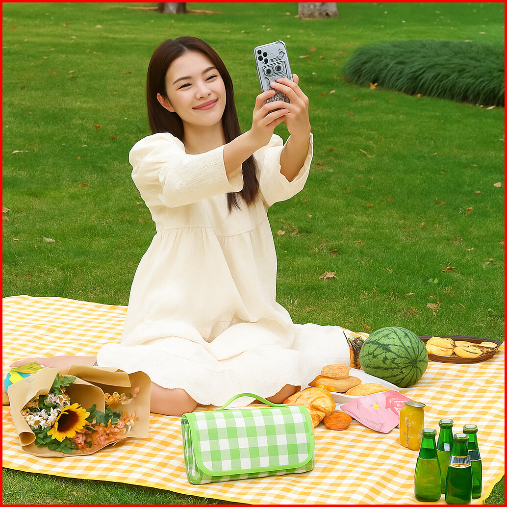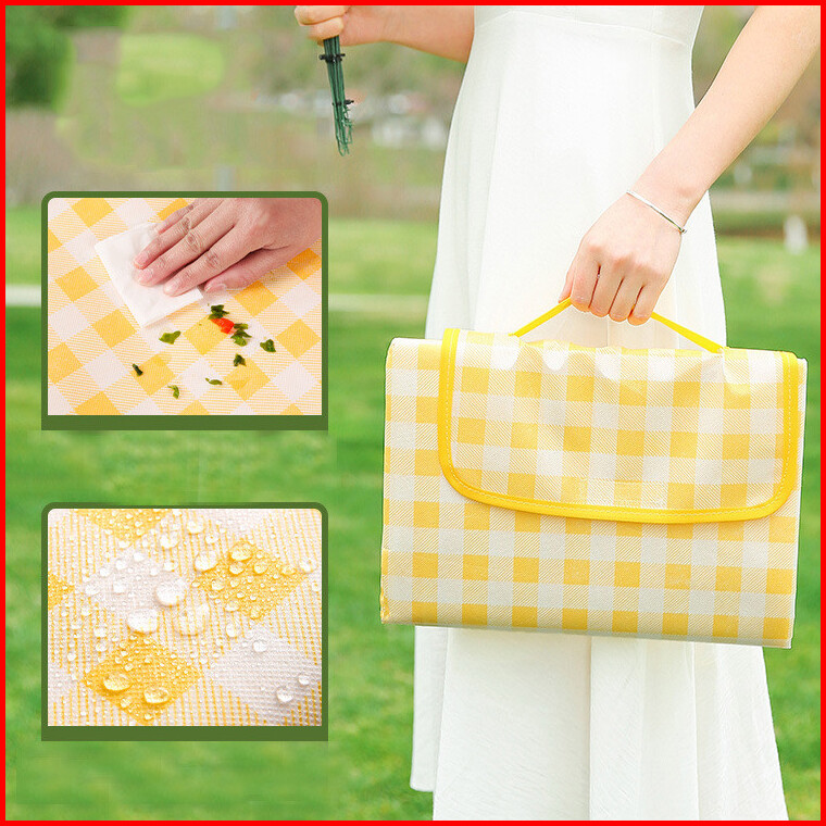 Hl0771 Tikar Piknik Lipat Anti Air Alas Matras Outdoor Waterproof Terpal Kemah Motif Kotak