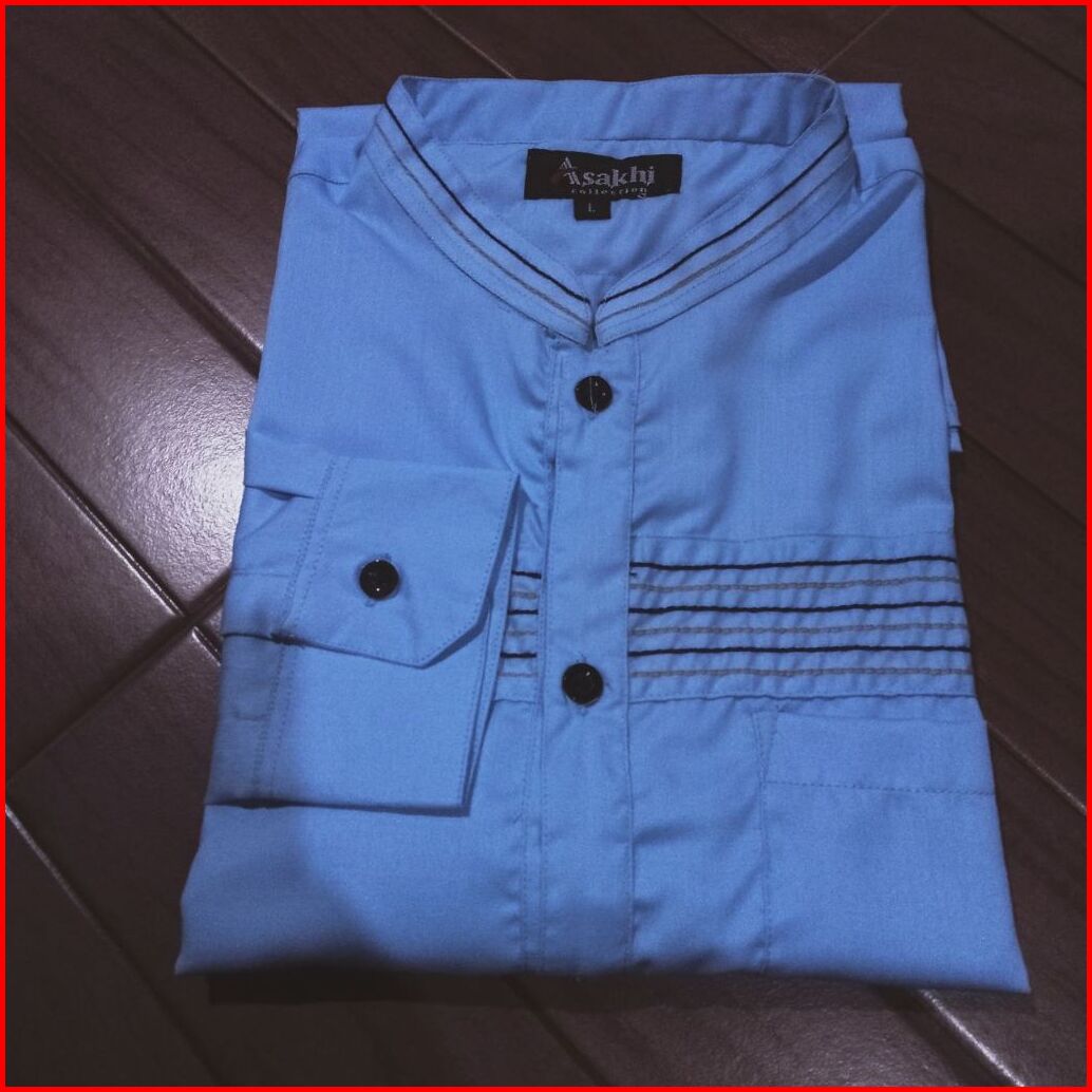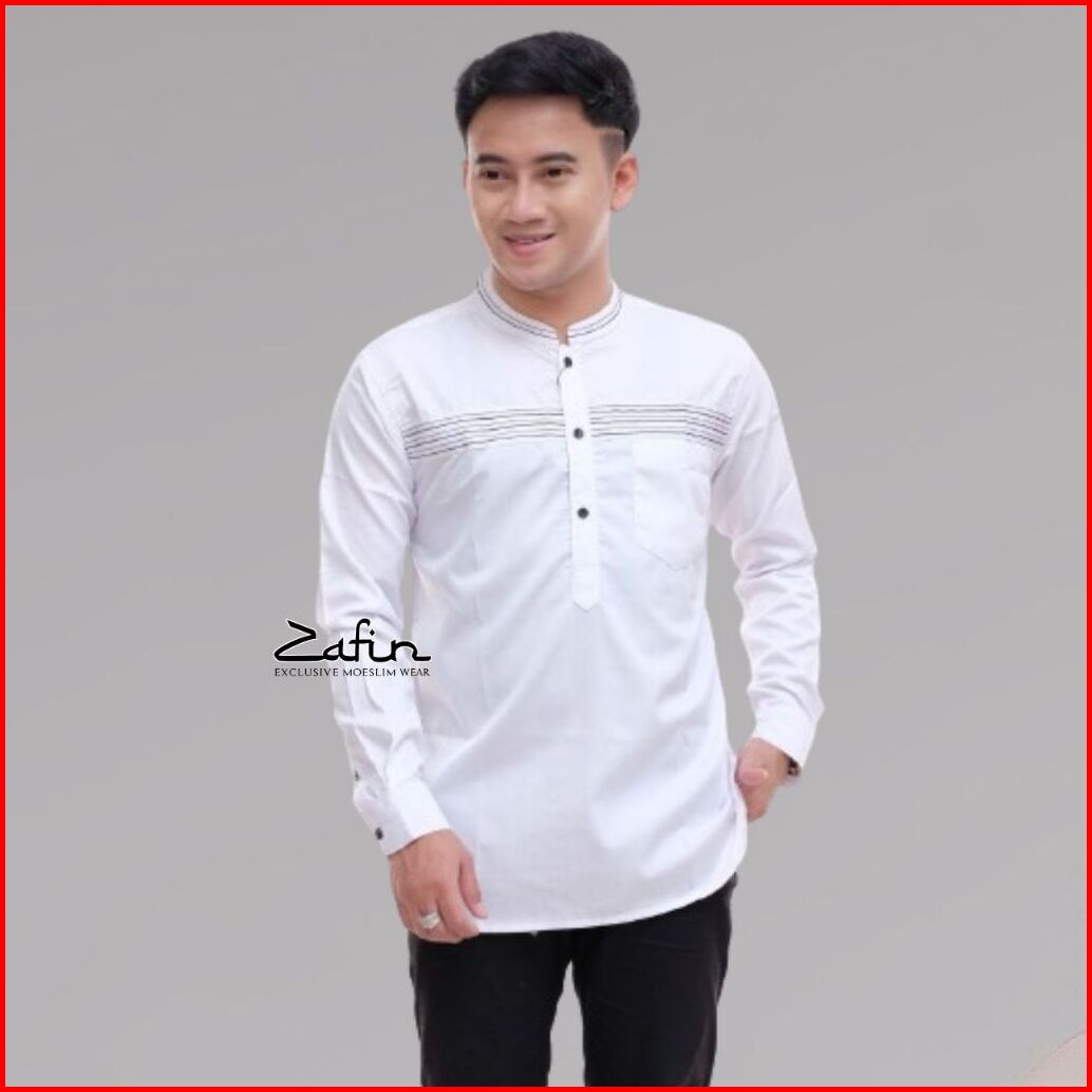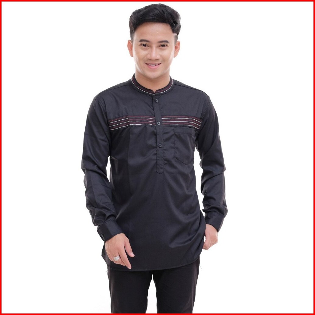 Zafin - Baju Koko Pria Elrumi Lengan Panjang Motif Zolied Warna Hitam Kombinasi Batik