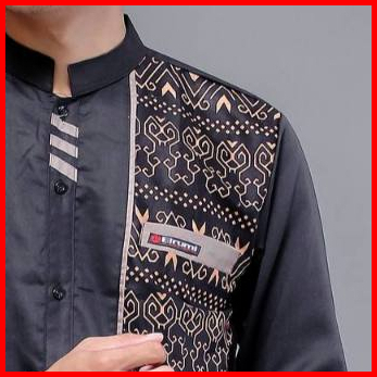 Baju Koko Pria Elrumi Lengan Panjang Motif Jarilist Kombinasi Batik Warna Hitam