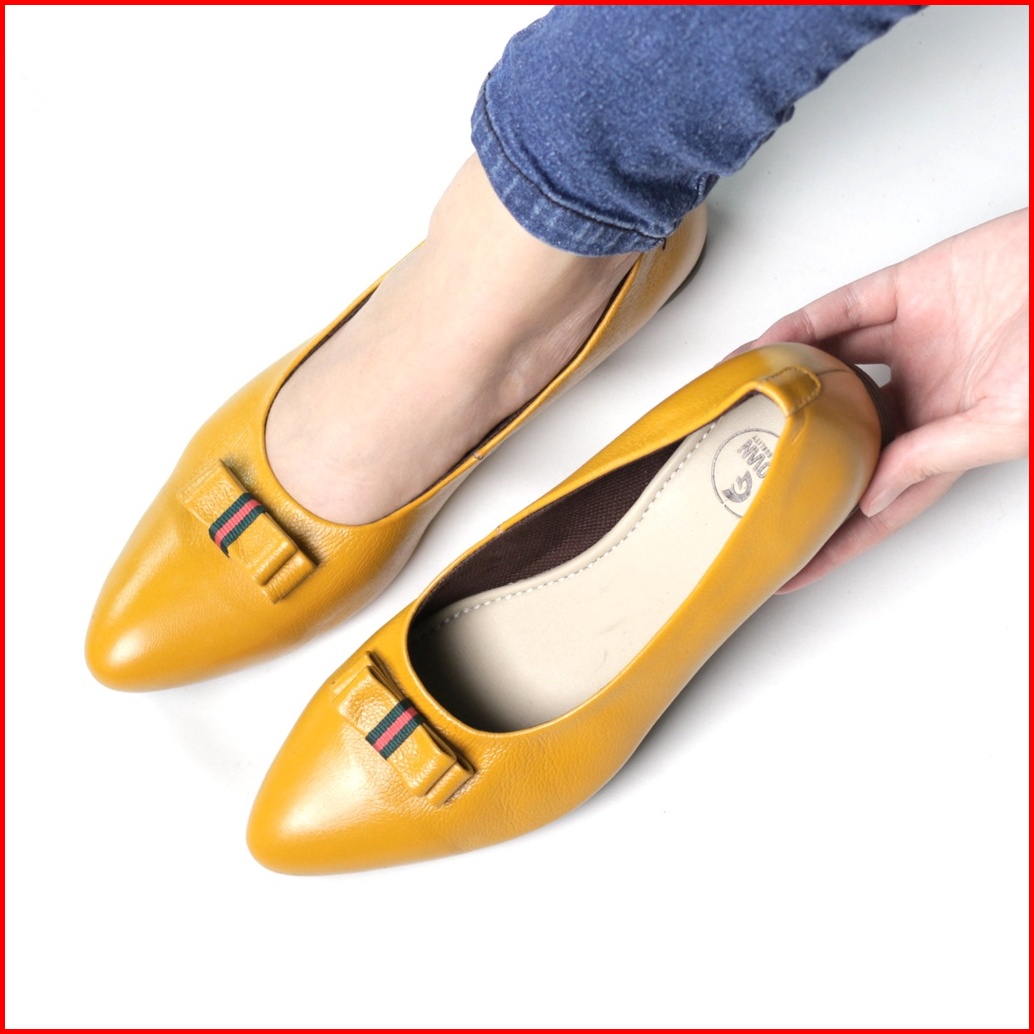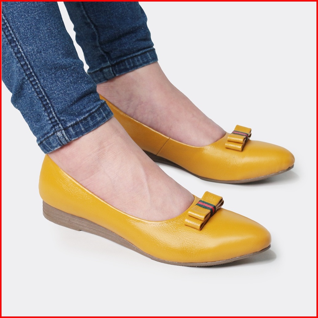 Cevany Sepatu Kerja Wanita Flat Formal Kulit Asli Geovani S - Pp01 Tan