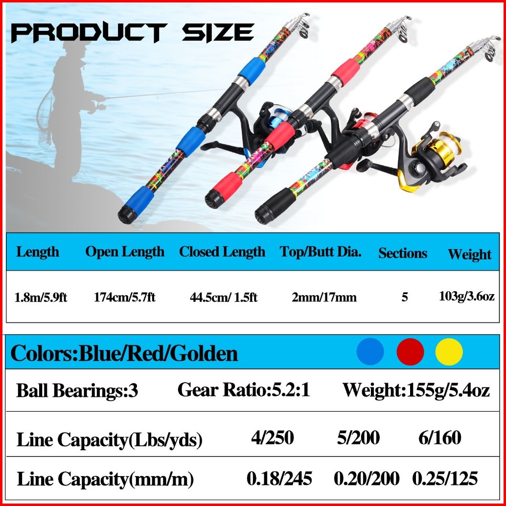 Sougayilang Pancing Set 3 Warna Joran Pancing 1 8m Set Yang Ditingkatkan Gulungan 3bb Daya Tarik Maksimum 6kg