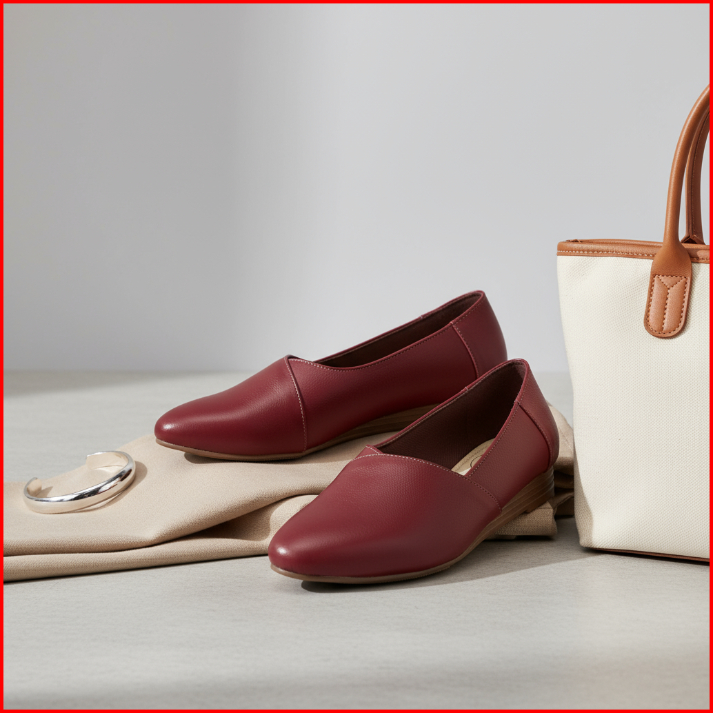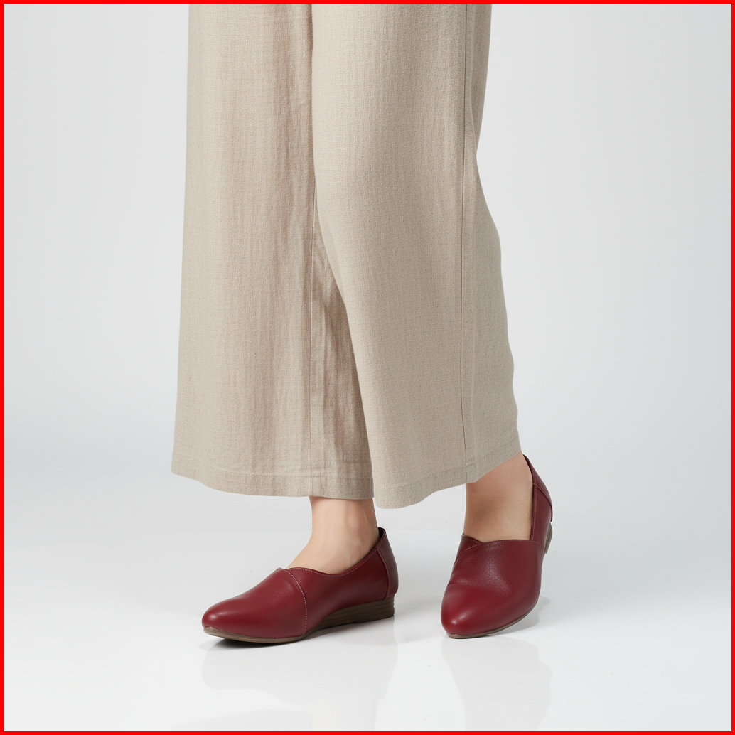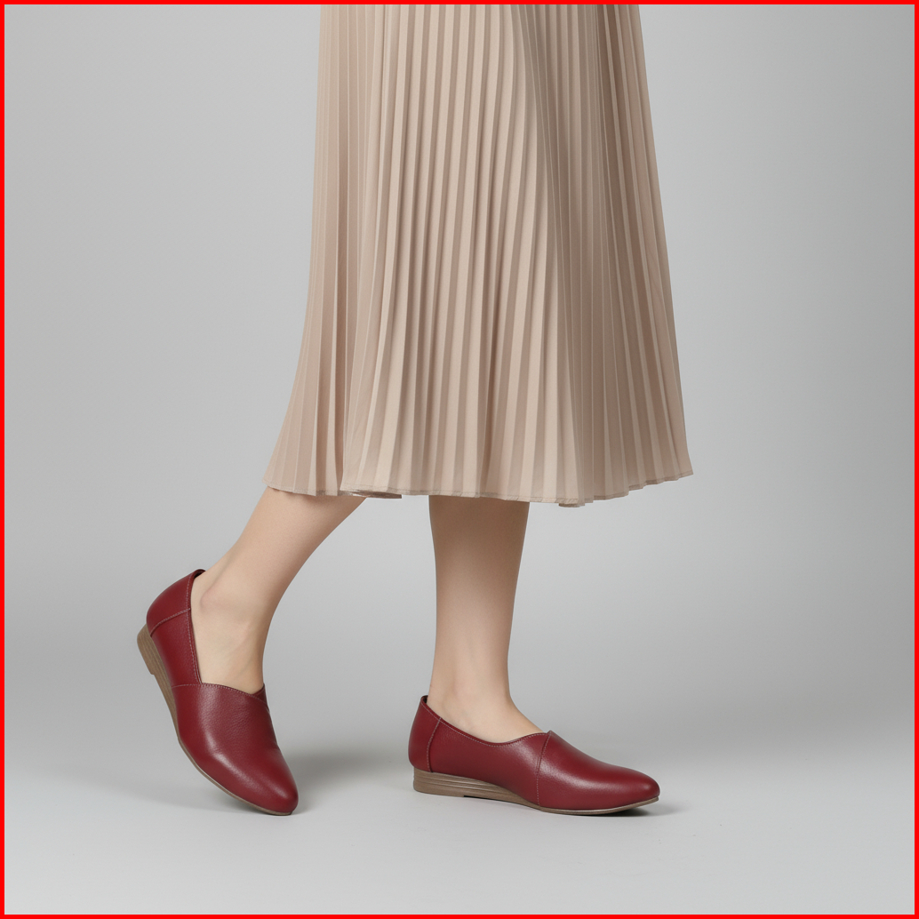 Cevany Sepatu Kerja Wanita Flat Shoes Formal Kulit Asli Geovani S - Pp02 Maroon