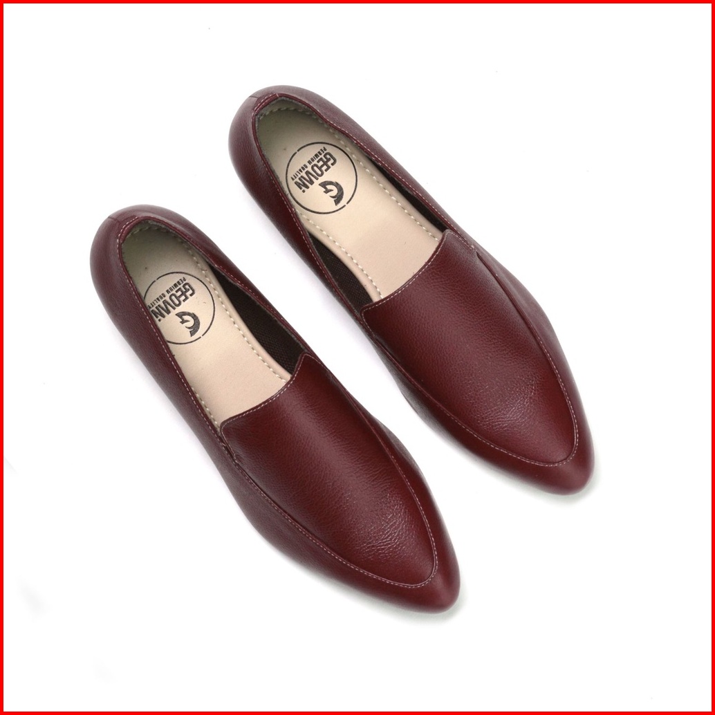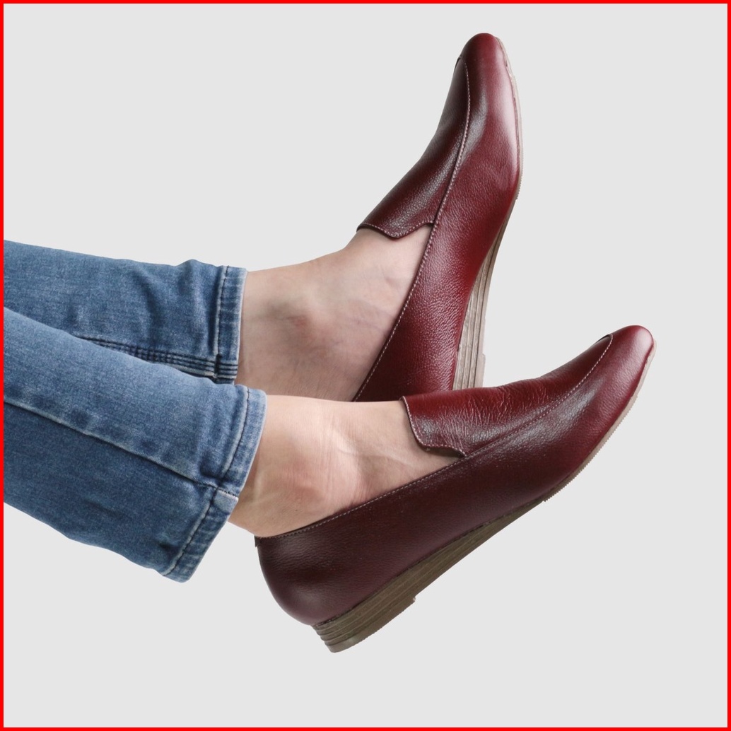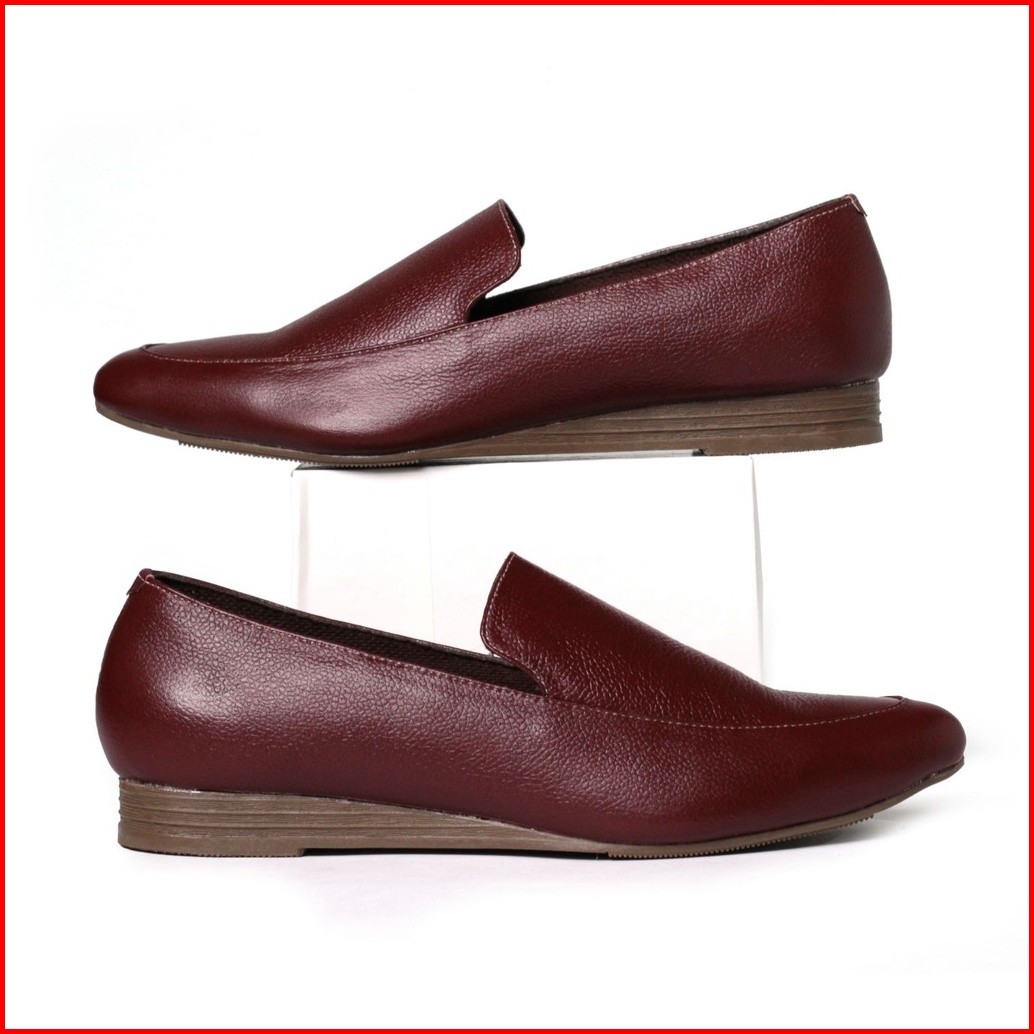 Cevany Sepatu Flat Shoes Wanita Kulit Maroon Charlotte