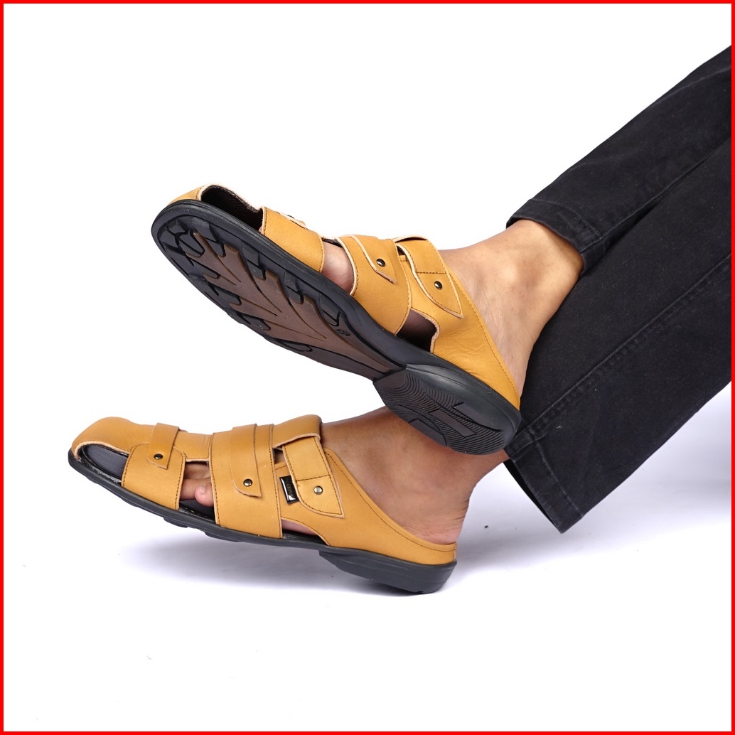 Cevany Sandal Pria Kulit Asli - Borongsong S Bustong Tan