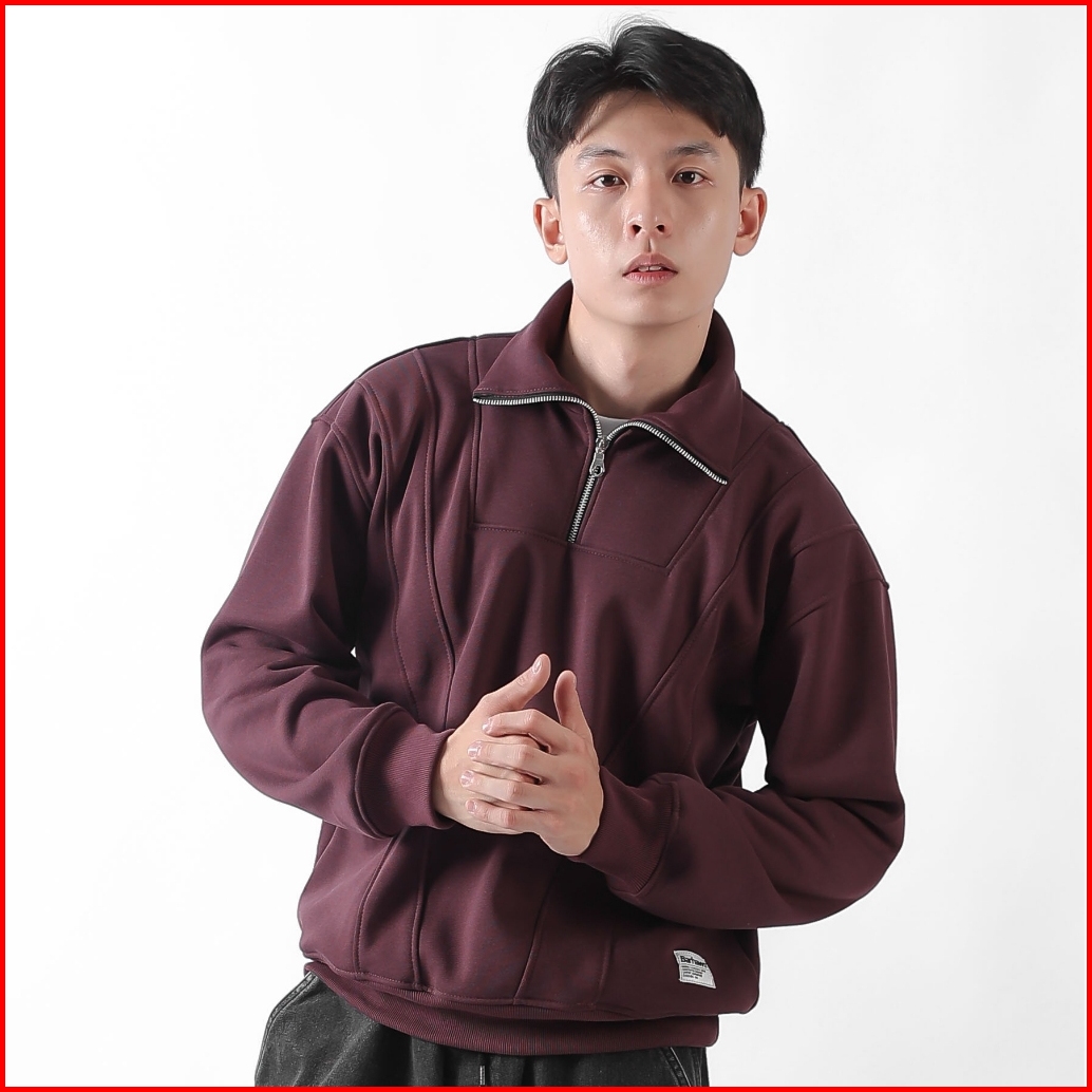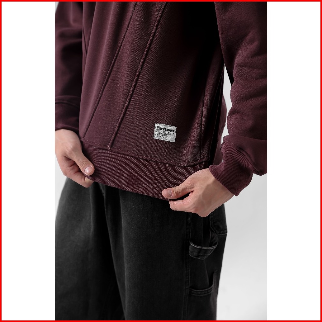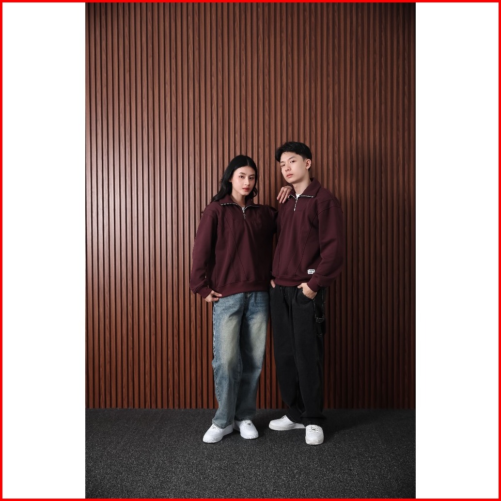 Barhaws - Sweater Half Zipper Boxy Cotton Pria Wanita Warna Mahogany Brown